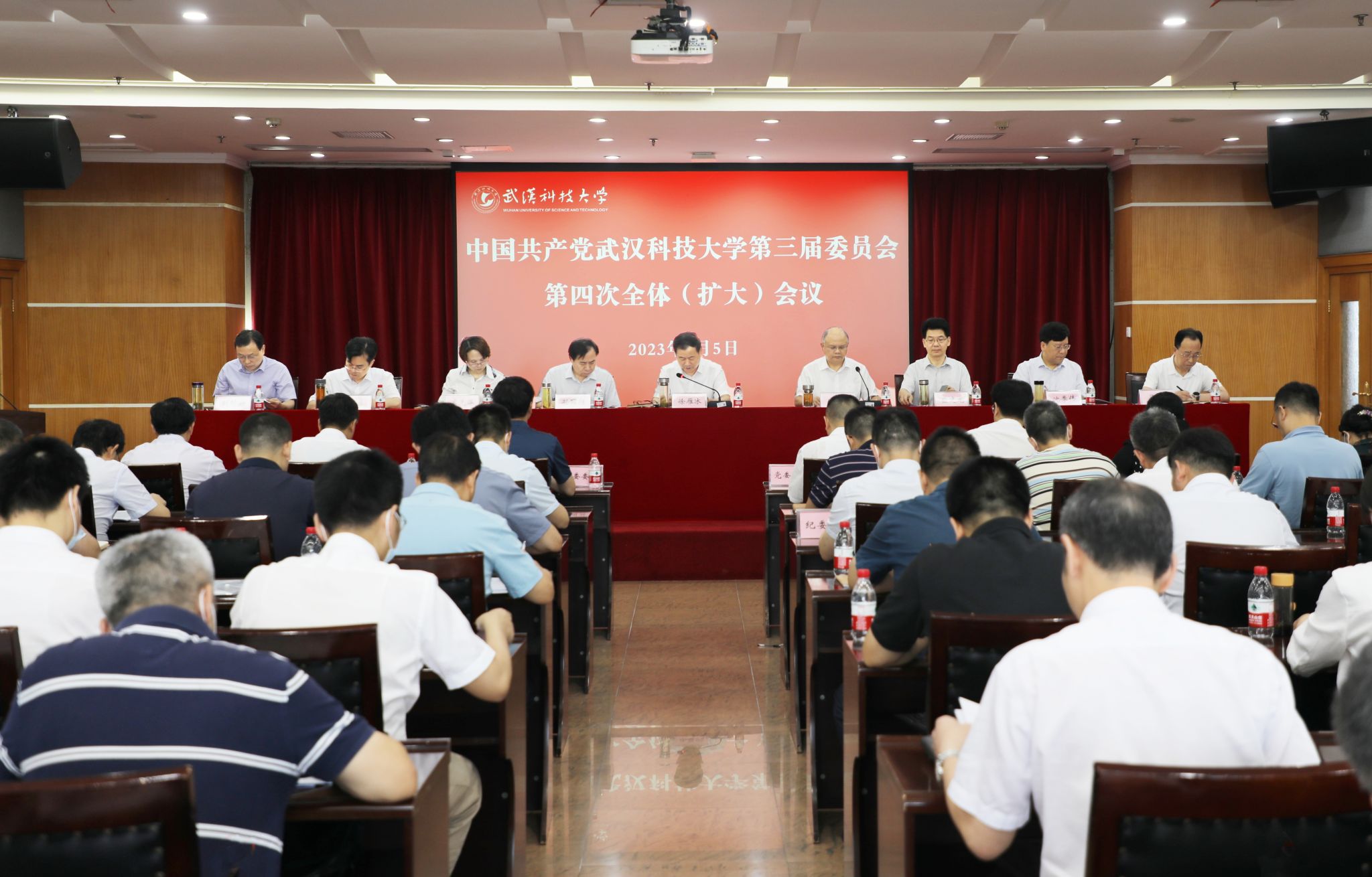 武科大网讯 7月5日上午,中国共产党js33333线路登录第三届委员会第四次全体(扩大)会议在青山校区主楼十八楼报告厅召开。大会听取了2023年上半年党委常委会工作报告、一流学科建设工作推进情况汇报,审议通过了《js33333线路登录关于推进有组织科研的实施意见》《js33333线路登录教职工退休和返聘工作管理办法》。