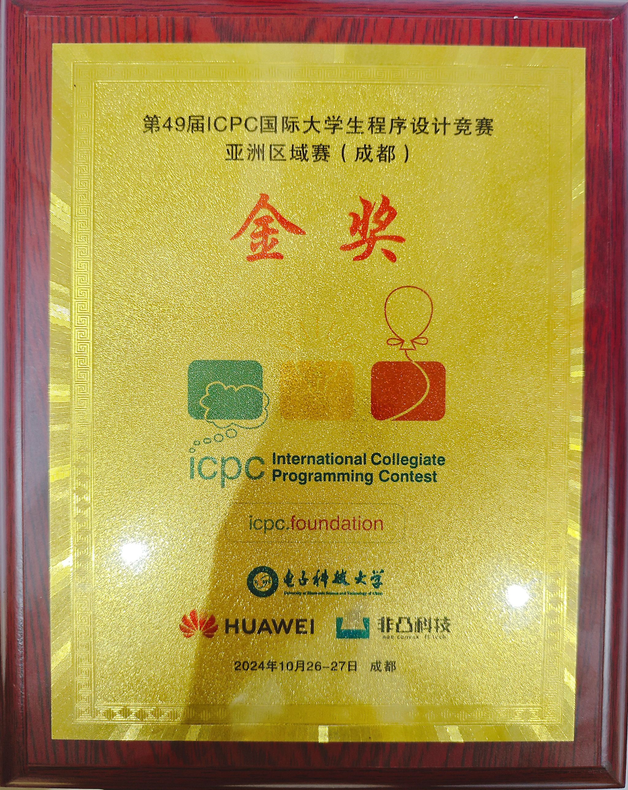 武科大网讯(通讯员施卓凡 张炎)10月27日,第49届ACM-ICPC国际大学生程序设计竞赛亚洲区域赛(成都站)在电子科技大学圆满落下帷幕。js官网计算机科学与技术学院ACM俱乐部派出的代表队“RELX悦刻幻影PRO”表现出色,经过长达5小时的激烈比拼,在众多强劲对手中脱颖而出,成为湖北省唯一获金奖高校。