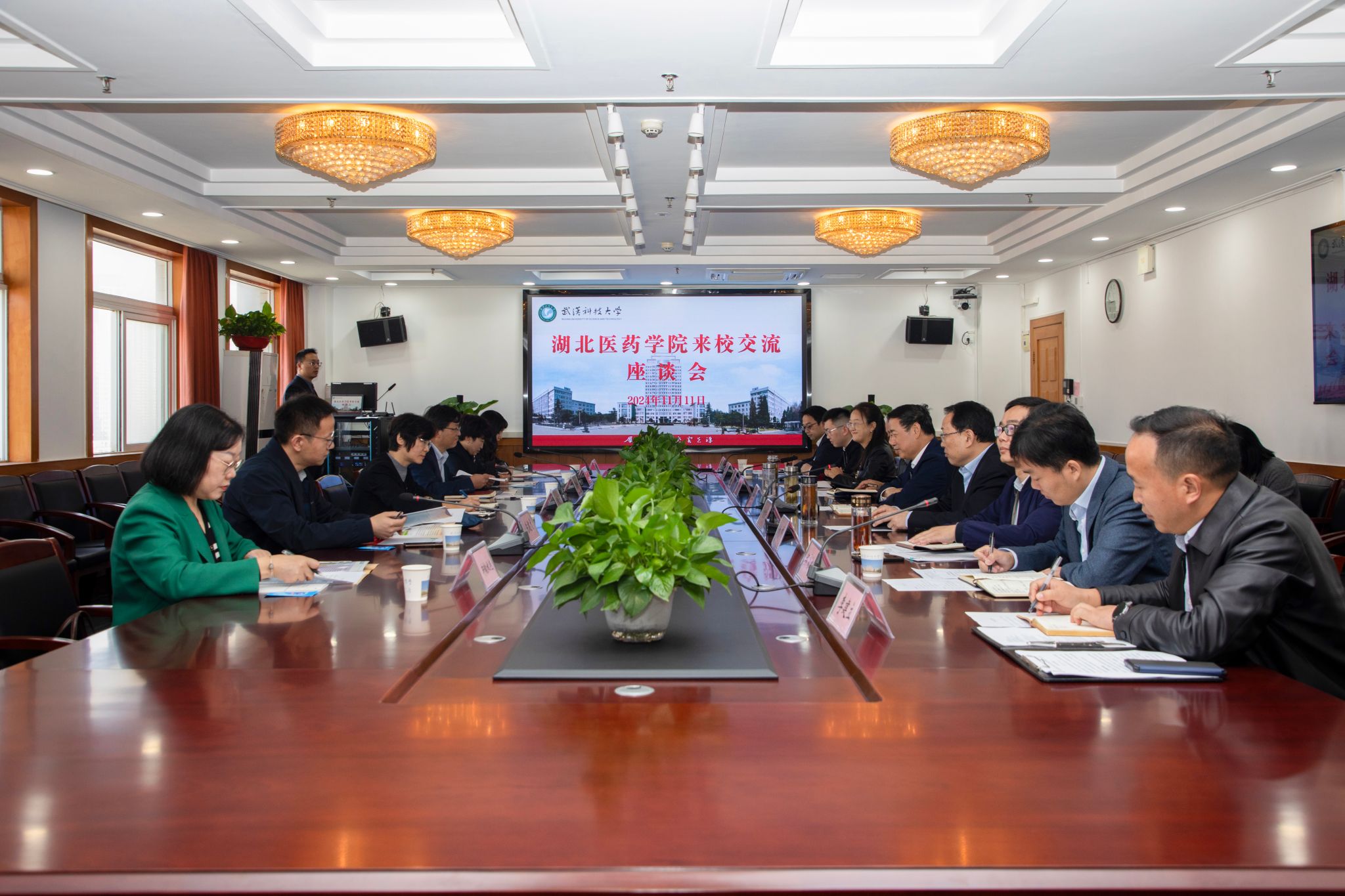 武科大网讯(记者陈孖川)11月11日上午,湖北医药学院党委书记郑丹凤一行来校调研。校党委书记徐雁冰与来宾在青山校区主楼1610座谈。校长倪红卫会见来宾。湖北医药学院党委常委、组织部部长张海蛟,js官网党委常委、组织部部长刘时新出席座谈会。