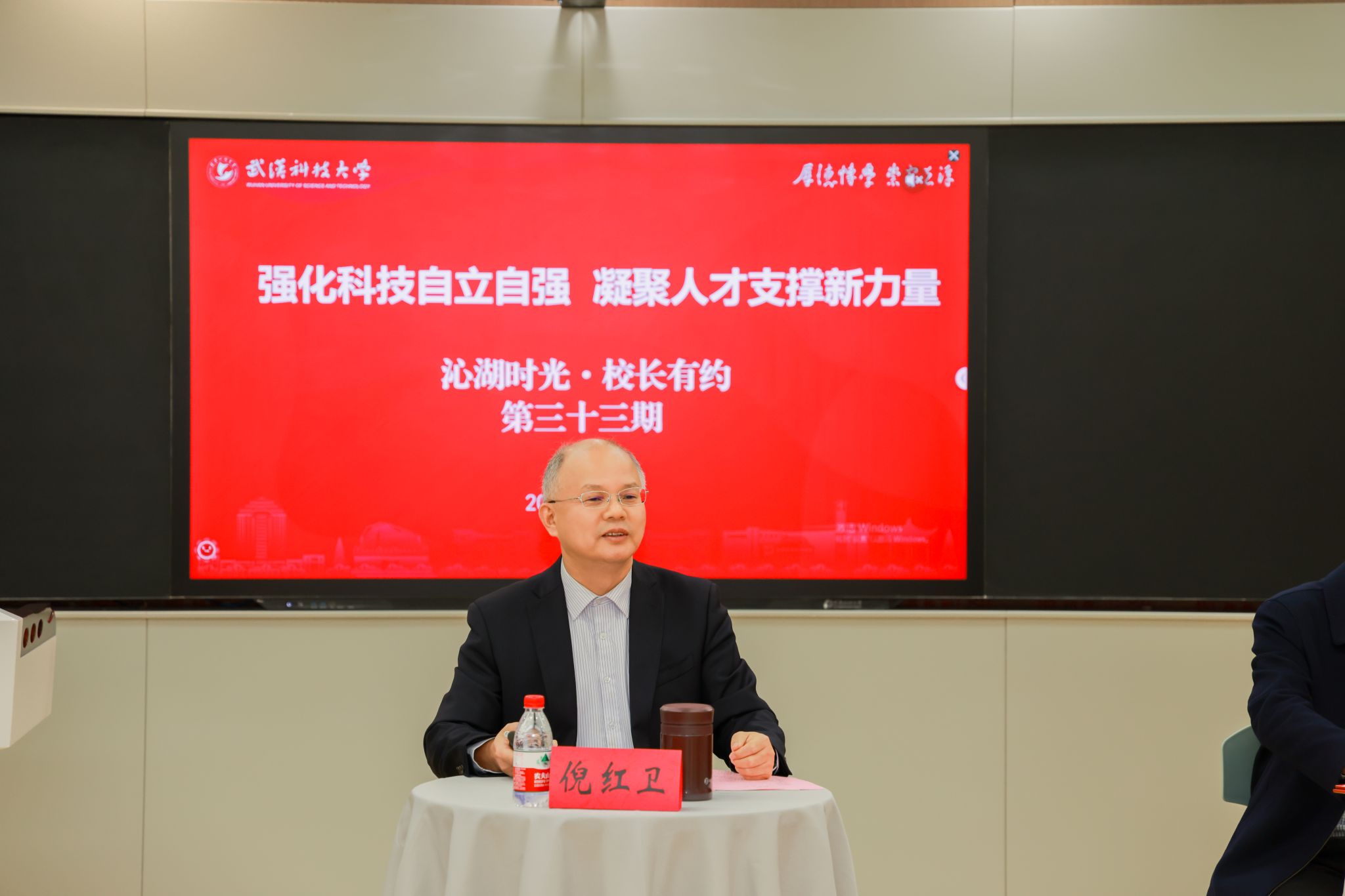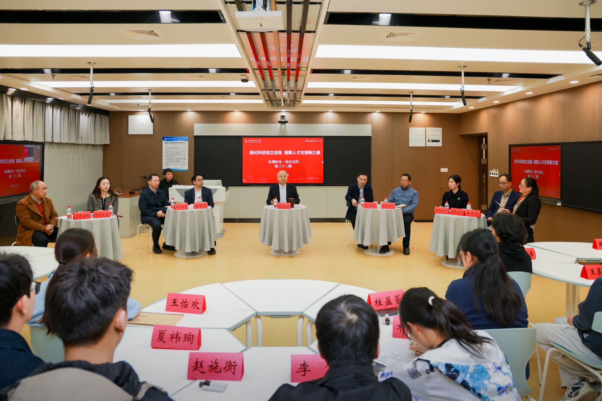 武科大网讯(通讯员牛诗涵 梁佩琦)11月21日,第三十三期“沁湖时光 校长有约”活动在黄家湖校区教十一楼举行。活动以“强化科技自立自强,凝聚人才支撑新力量”为主题,校长倪红卫与材料学部、资源与环境工程学院双学士学位专业学生代表共聚一堂,探讨跨学科融合创新,共话学生成长与发展。党委学生工作部(处)部(处)长潘丽莎主持会议。