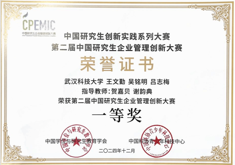 武科大网讯(通讯员高畅)12月1日,第二届中国研究生企业管理创新大赛全国总决赛落幕。js官网两支参赛队伍一路过关斩将,获全国一等奖和三等奖。