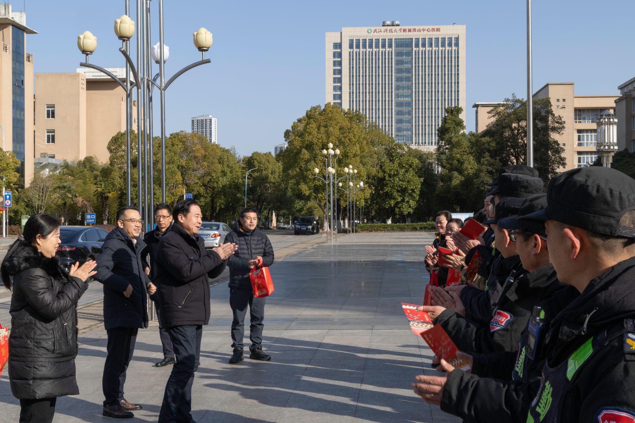武科大网讯(记者陈孖川) 1月27日上午,春节来临之际,校党委副书记孙国胜代表学校深入一线,逐一走访青山校区、洪山校区、黄家湖校区、附属天佑医院,看望慰问了各校区后勤保障部、保卫处除夕春节值班人员及天佑医院、校医院一线医护人员,向他们送去新春祝福和慰问金。