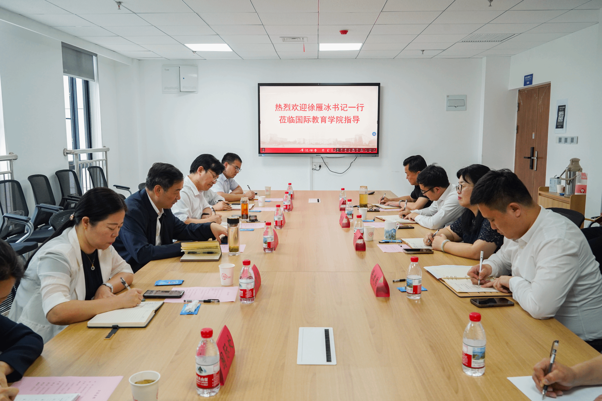 徐雁冰强调,要组建专班,加快推动“js33333线路登录马德里康普顿斯学院”建设,从组织架构、学生培养、办学资源、师资保障、招生宣传、运行机制等多个方面为学院建设起步保驾护航,高起点、高效率迎接学院首届中外合作办学项目学生。