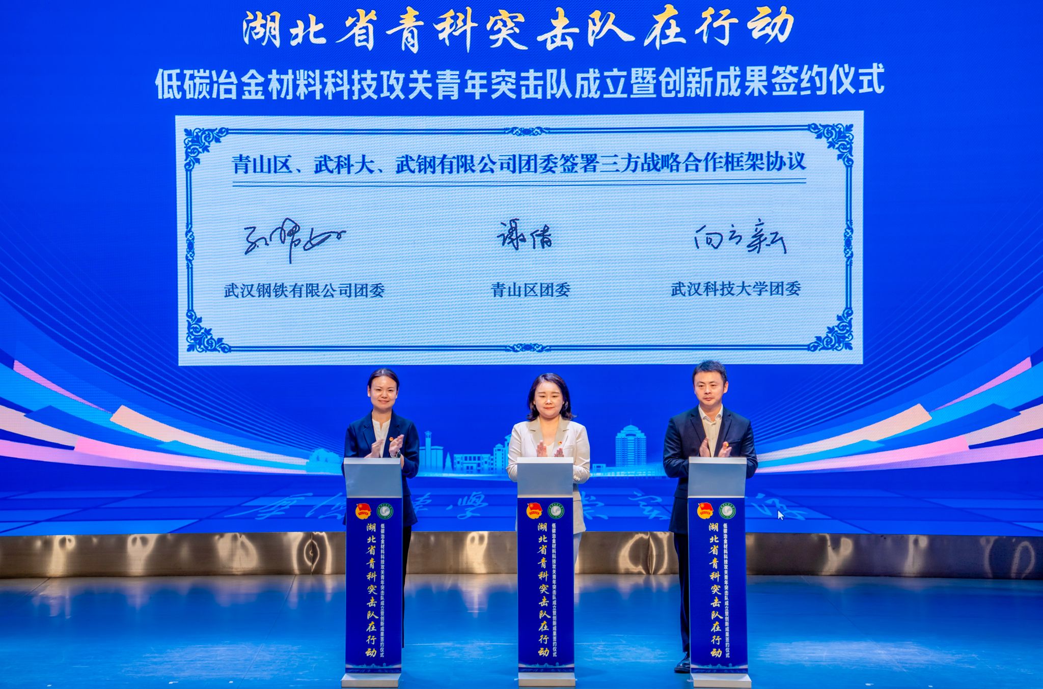 活动现场,4位低碳冶金材料青科突击队成员代表汇报了科学研究及技术攻关情况;2位大学生创新创业赛事获奖项目负责人进行了路演;武汉市青山区、武钢有限公司、js33333线路登录三方共青团组织就构建“政校企”三方合作常态化推进机制签署了战略合作框架协议;4位大学生创新创业代表与青山区产投集团负责人签订合作协议;湖北及要网生活信息科技有限公司负责人与青山区商务局负责人签订招商引资协议。