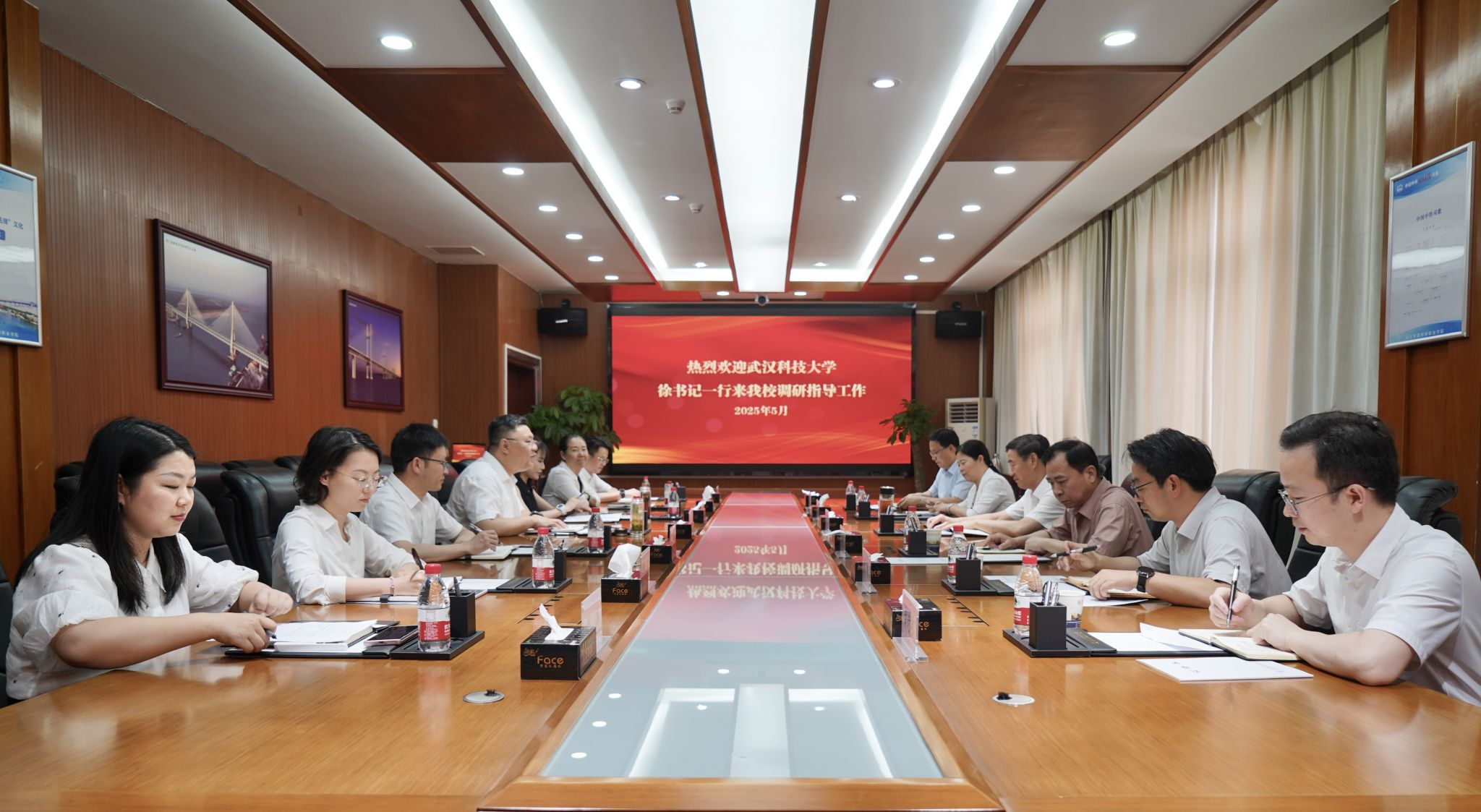 武科大网讯 5月14日下午,校党委书记徐雁冰带队赴省级大中小学思政课一体化共同体建设成员单位——武汉铁路桥梁职业学院,调研大中小学思政课一体化建设。校党委副书记孙国胜陪同调研。武汉铁路桥梁职业学院党委书记王春、校长黄梦煜、副校长卢刚参加有关活动。