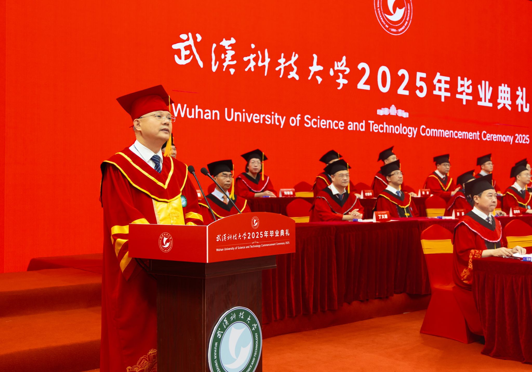 校长倪红卫以“与时偕行 力新致远”为题,为毕业生送上临别寄语。“‘力新’源自沁湖文化‘向上向美、力行力新’,意为‘力求创新、革故鼎新’,根植于武科大“钢铁品质”的沃土。”倪红卫说,从张之洞创办工艺学堂开启实业教育先河,到新中国成立后一代代武科大学人为新中国钢铁工业发展壮大作出巨大贡献,再到近年19项国家科技奖、耐火材料学科世界“单项冠军”的成就,武科大始终以创新引领发展。