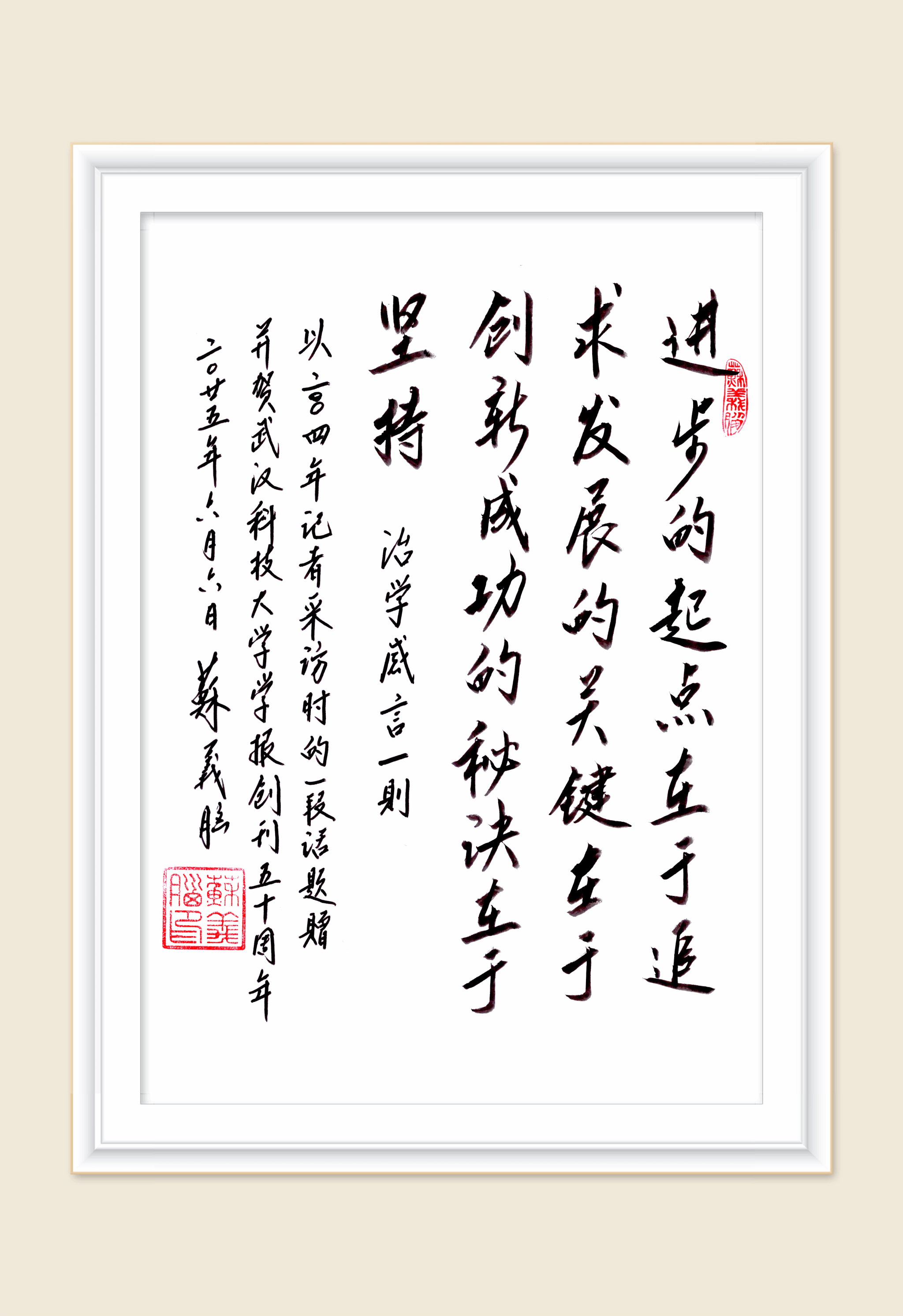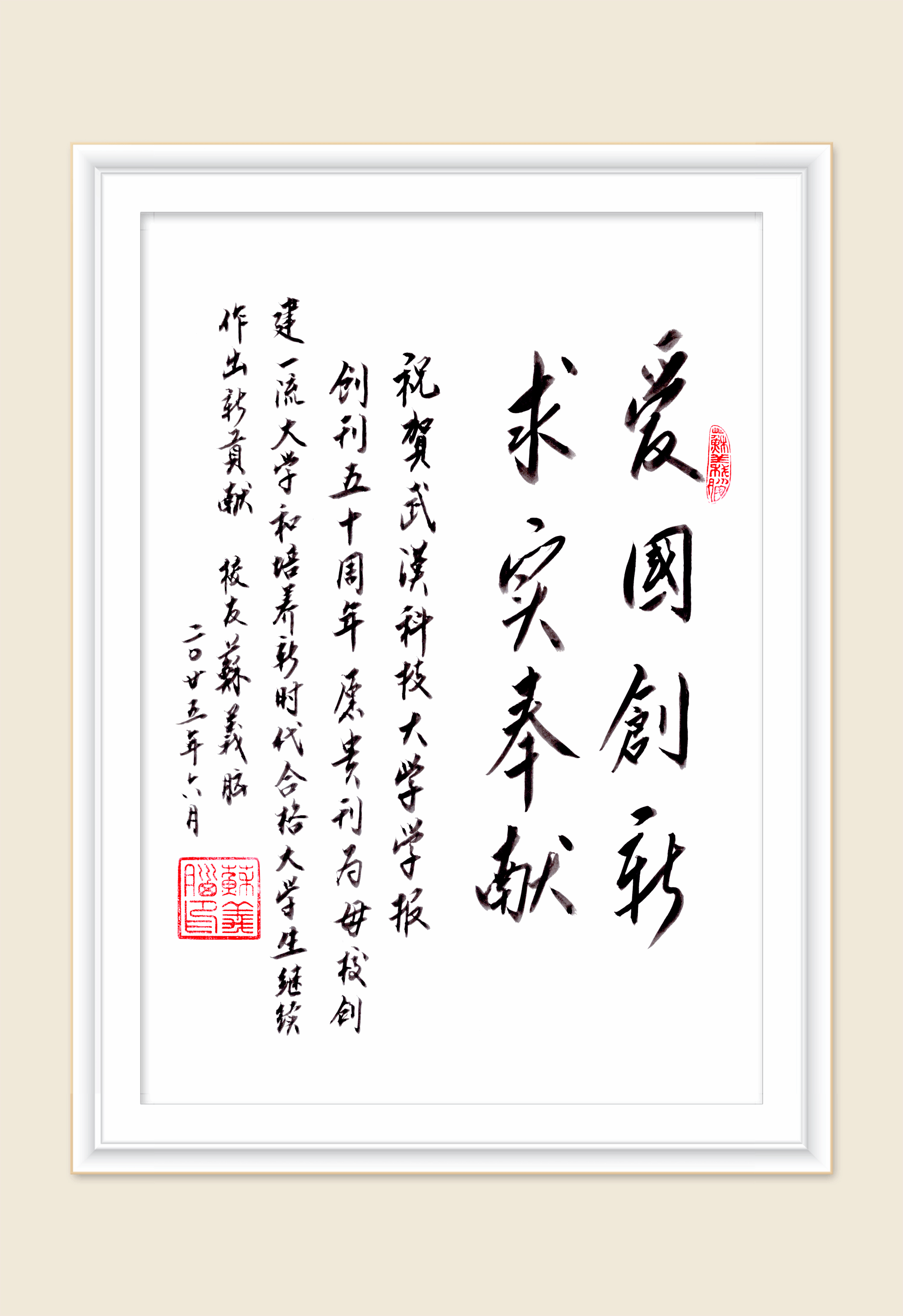 武科大网讯 近日,js官网1976届矿山机械专业校友、中国工程院院士苏义脑应邀为《js33333线路登录学报》创刊50周年题写的贺辞顺利寄抵js官网。“质量立刊,特色兴刊”“爱国创新,求实奉献”“进步的起点在于追求,发展的关键在于创新,成功的秘诀在于坚持”,三幅墨宝带来了苏义脑院士对学报的殷切期望和美好祝愿。