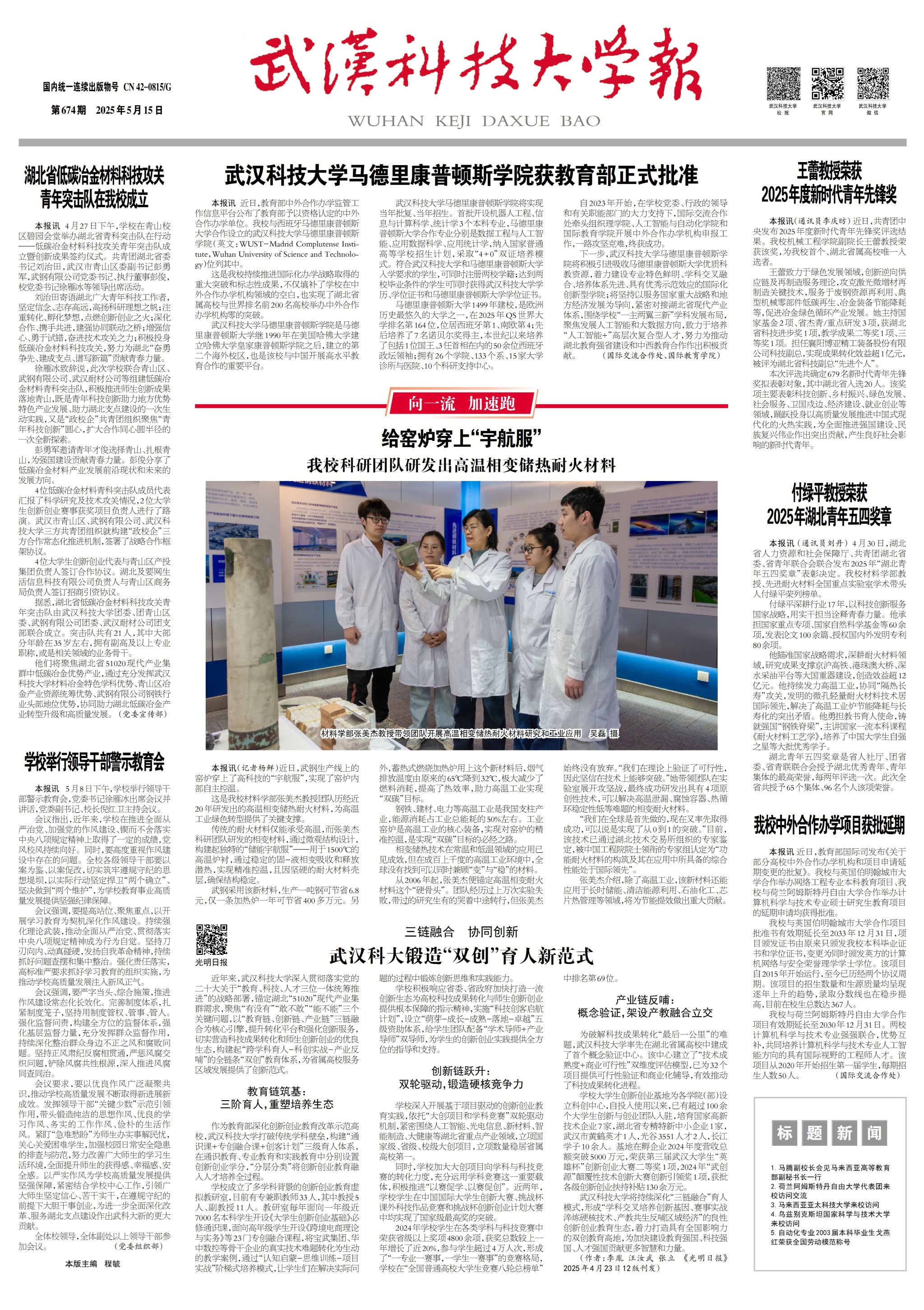近年来,js官网深入贯彻落实党的二十大关于“教育、科技、人才三位一体统筹推进”的战略部署,锚定湖北“51020”现代产业集群需求,聚焦“有没有”“敢不敢”“能不能”三个关键问题,以“教育链、创新链、产业链”三链融合为核心引擎,提升转化平台和强化创新服务,切实营造科技成果转化和师生创新创业的优良生态,构建起“跨学科育人-科创实战-产业反哺”的全链条“双创”教育体系,为省属高校服务区域发展提供了创新范式。