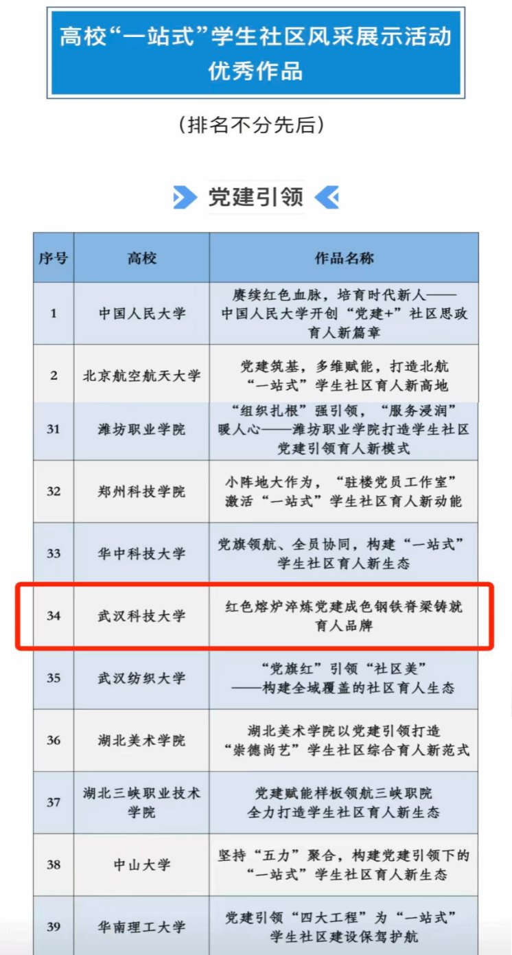 武科大网讯 近日,教育部思想政治工作司公布2025年高校“一站式”学生社区风采展示活动优秀成果评选结果,js官网报送的《红色熔炉淬炼党建成色 钢铁脊梁铸就育人品牌》入选“党建引领”类别优秀成果。这是js官网首次荣获该类别荣誉,标志着学校“一站式”学生社区建设取得突破性进展。
