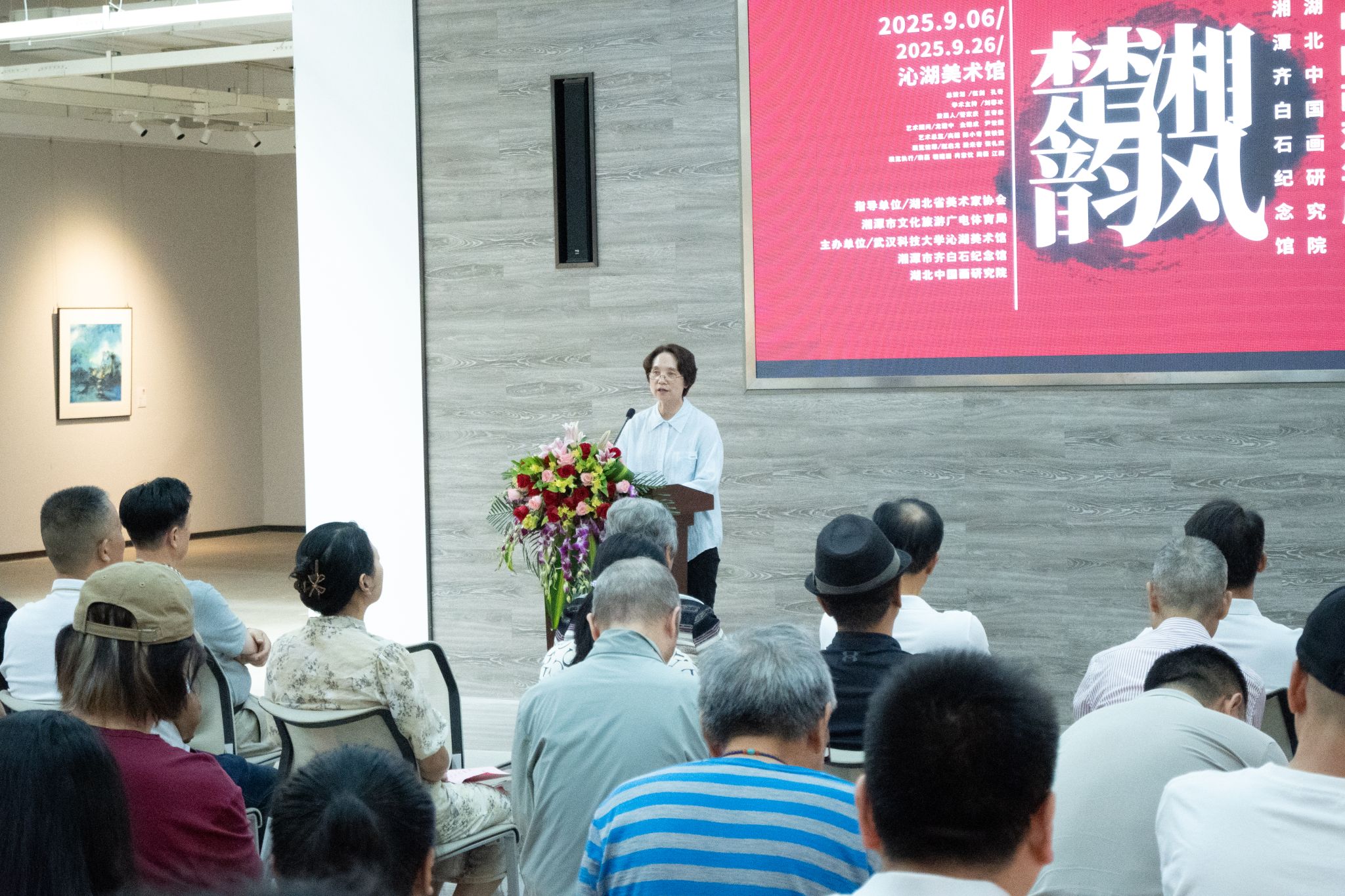 陶宏家在致辞中阐述了湘鄂两地的历史文化渊源。他谈到,湖南湖北自古便是一家,共饮长江水,同属楚文化圈,相同的地域文化造就了相通的文化理念。他高度肯定了此次艺术交流的深远意义,并对在高温天气下为展览辛勤付出的艺术家与工作人员表示诚挚的慰问。