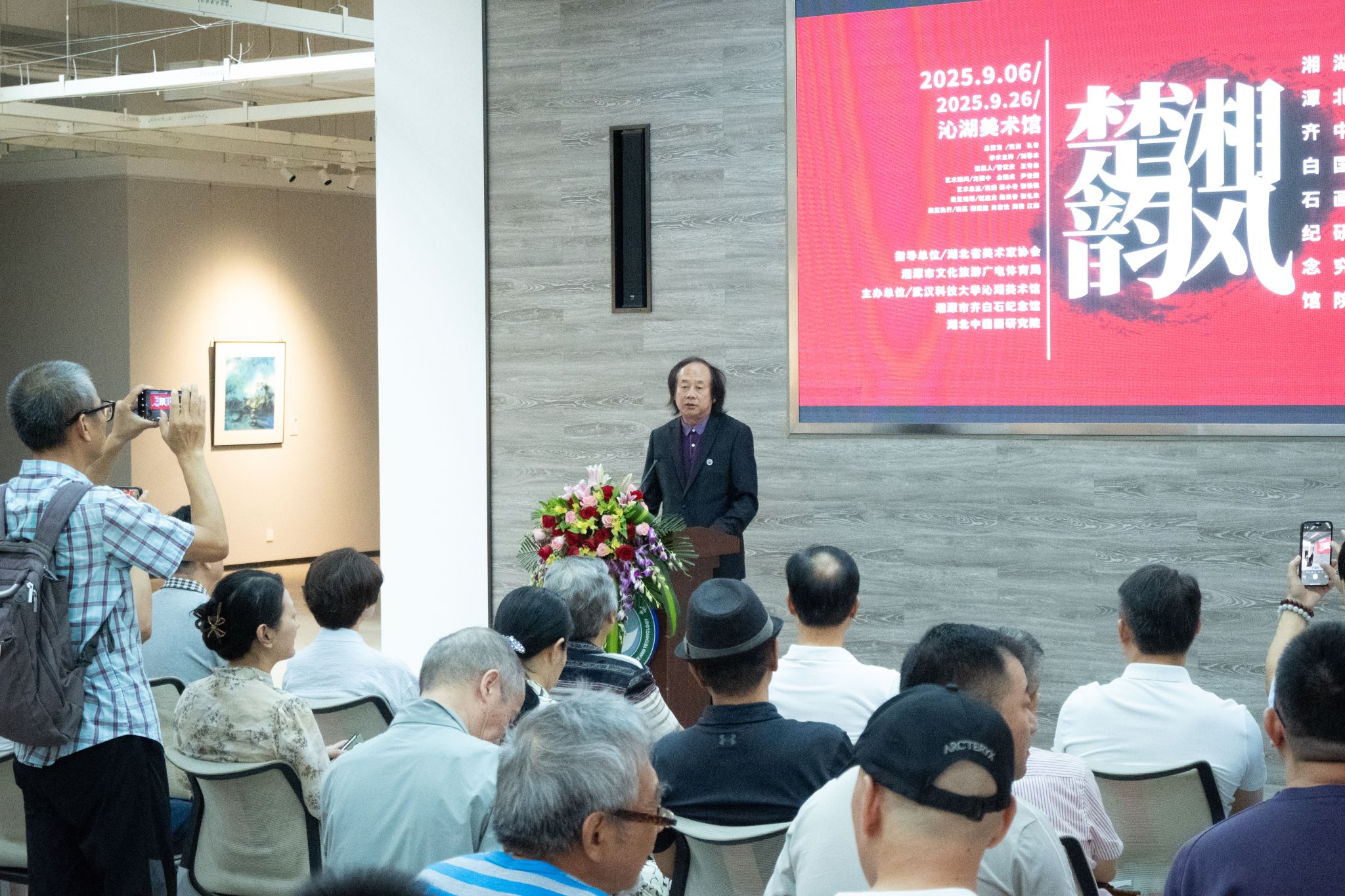 伍剑在致辞中描绘了从荆楚文化的雄浑大气到湖湘文化的敢为人先,两地文脉相连、精神共通的壮丽画卷。他表示,本次展览既有对传统文化的深情守望,也有对时代精神的创新表达,是“湘江烟雨”与“楚地云霞”的美妙交融,更是齐白石艺术精神在当代的传承与发扬。