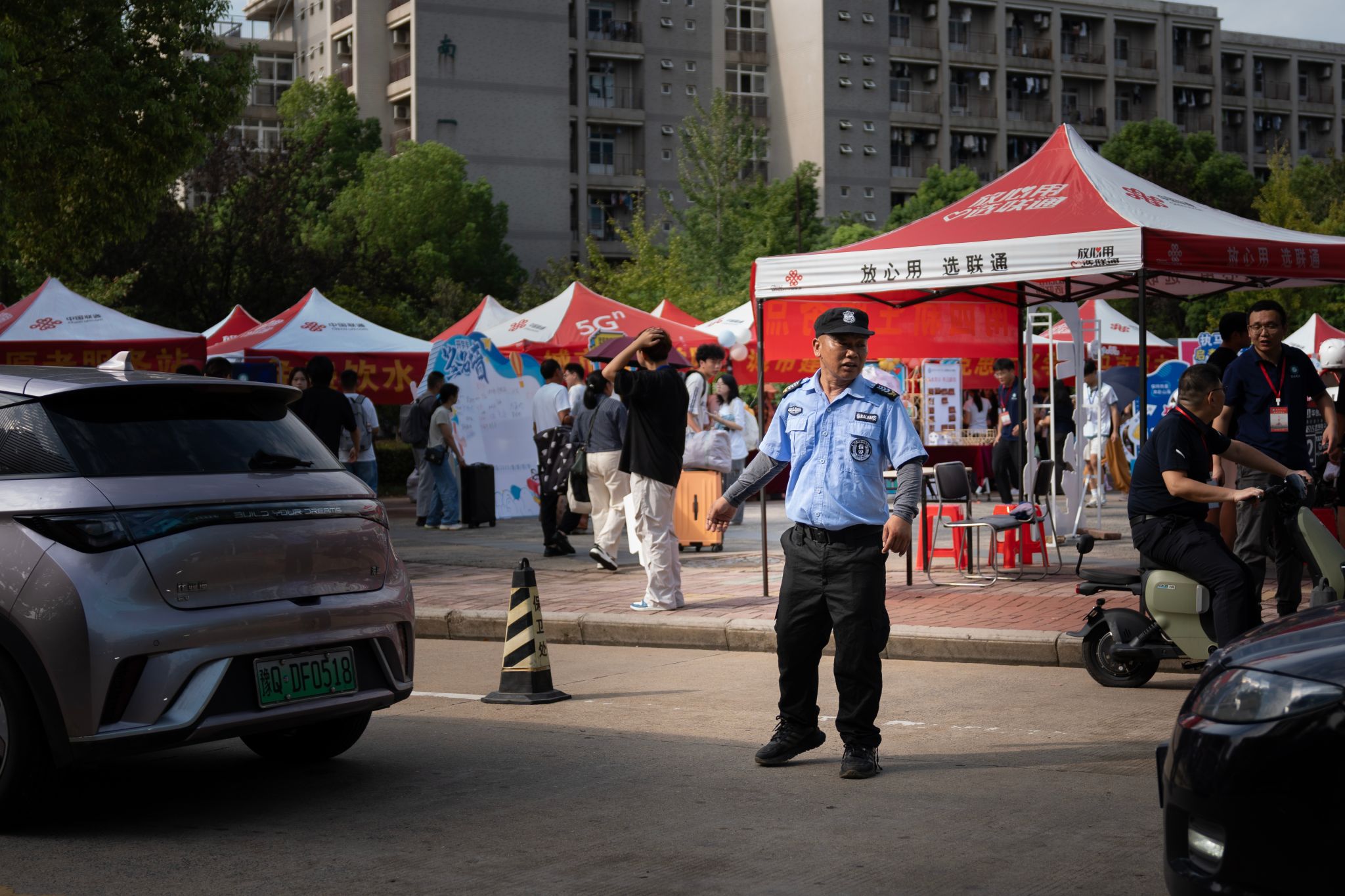 各学院迎新活动各具特色,亮点纷呈。“太酷啦!这机器人还能蹲起旋转!”在北园迎新点,人工智能与自动化学院的黑色步行机器人甫一亮相,便引来新生与家长们的阵阵惊叹。这个头顶小篮子、脚踩“风火轮”的机器人不仅能灵活地移动,还能与新生互动,帮助他们放置随身物品。该院新生辅导员介绍,希望通过这种方式,让新生第一时间感受到科技的魅力与专业的乐趣。
