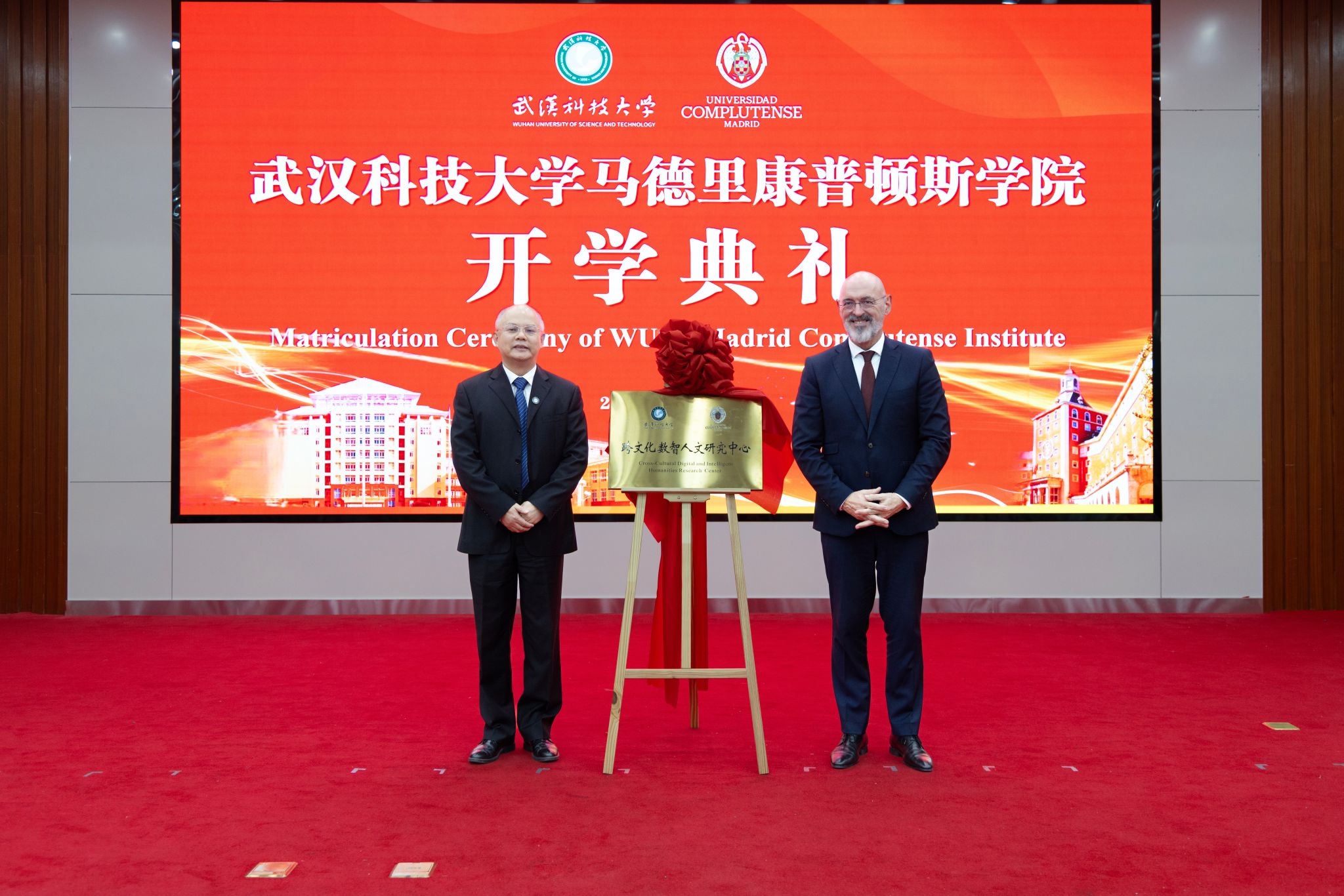 马德里康普顿斯大学统计研究学院院长克里斯托·帕雷哈、计算机科学与工程学院院长路易斯·安东尼奥和武汉校区执行校长胡安·卡洛斯先后发言,介绍了学院特色与未来规划,勉励同学们勇做探索者与创造者。2025级新生代表宋俊锐在发言中表示,将汲取中西智慧精髓,为推动科技进步与跨文化交流贡献青春力量。