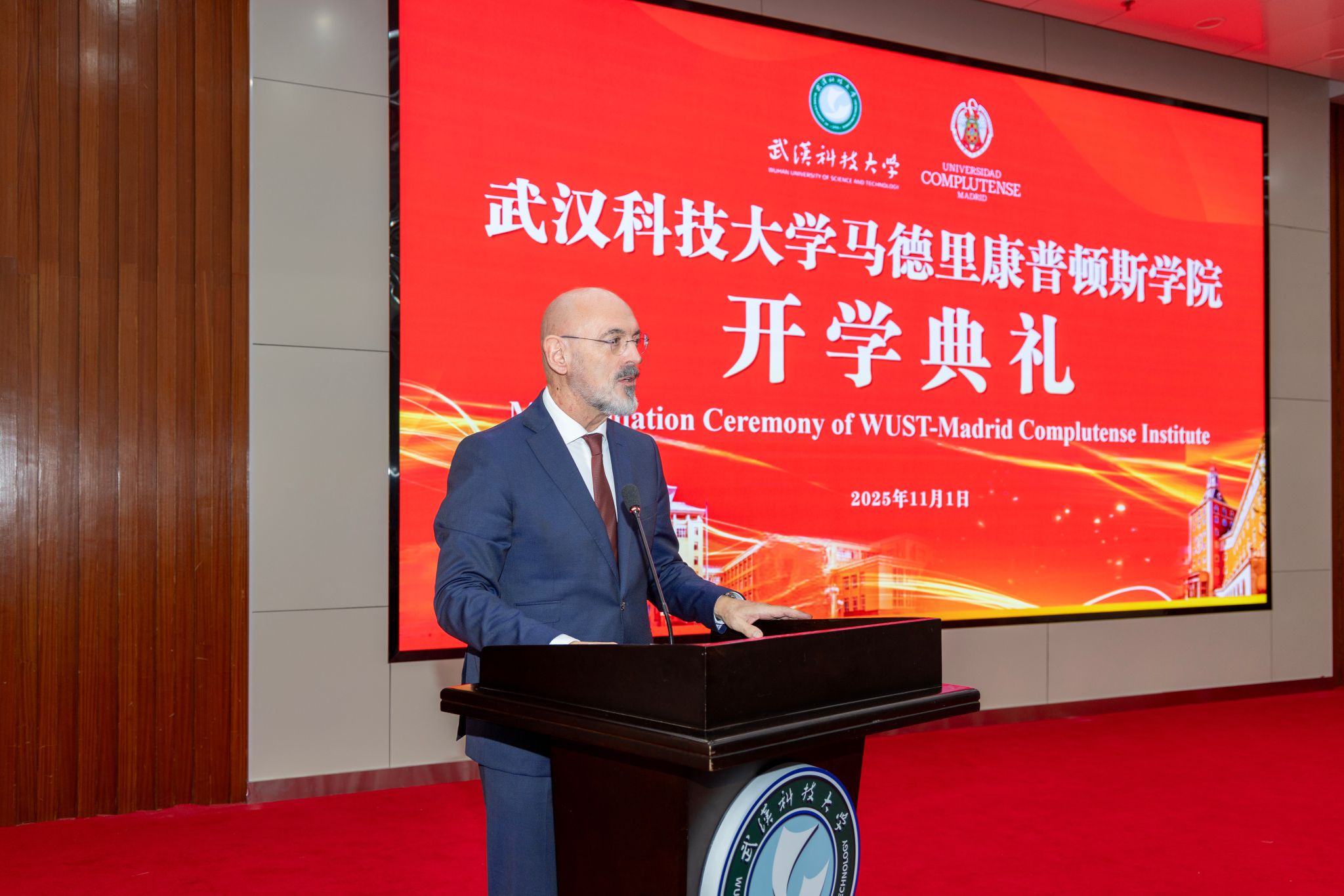 华金·戈亚契·戈尼在致辞中盛赞此次合作是“一座连接两种文化、两段历史和两种知识体系的桥梁”,它将js33333线路登录在工程应用领域的雄厚实力与马德里康普顿斯大学在人文社科领域的悠久传统完美融合。他特别引用中国思想家孔子的名言“知者不惑,仁者不忧,勇者不惧”寄语新生,强调真正的智慧、仁爱与勇气是教育的根基与人生的力量,并希望同学们通过学习,成长为既能推动科技进步,又心怀人类福祉的未来英才。