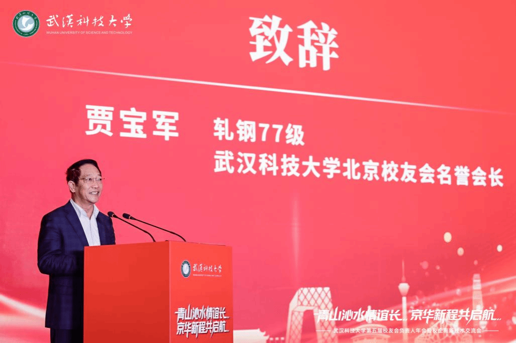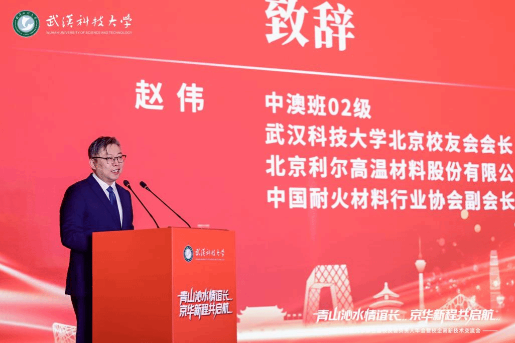 北京校友会名誉会长,原中国航空器材集团有限公司党委书记、董事长,轧钢77级校友贾宝军;北京校友会会长,北京利尔高温材料股份有限公司董事长,中澳班02级校友赵伟代表北京校友会分别致辞,回顾在母校的求学时光,介绍校友会建设情况,并展望校企合作新方向。