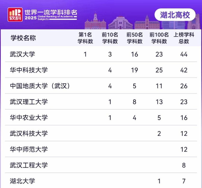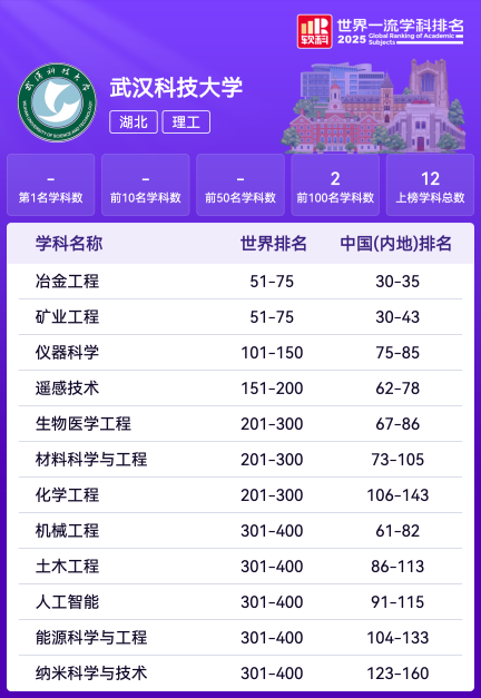 武科大网讯 11月18日,软科发布“2025世界一流学科排名”,js官网12个学科上榜,位居湖北省属高校第一。近六年来,在软科世界一流学科排名中,js官网始终保持湖北省属高校上榜学科总数最多,排名第一。