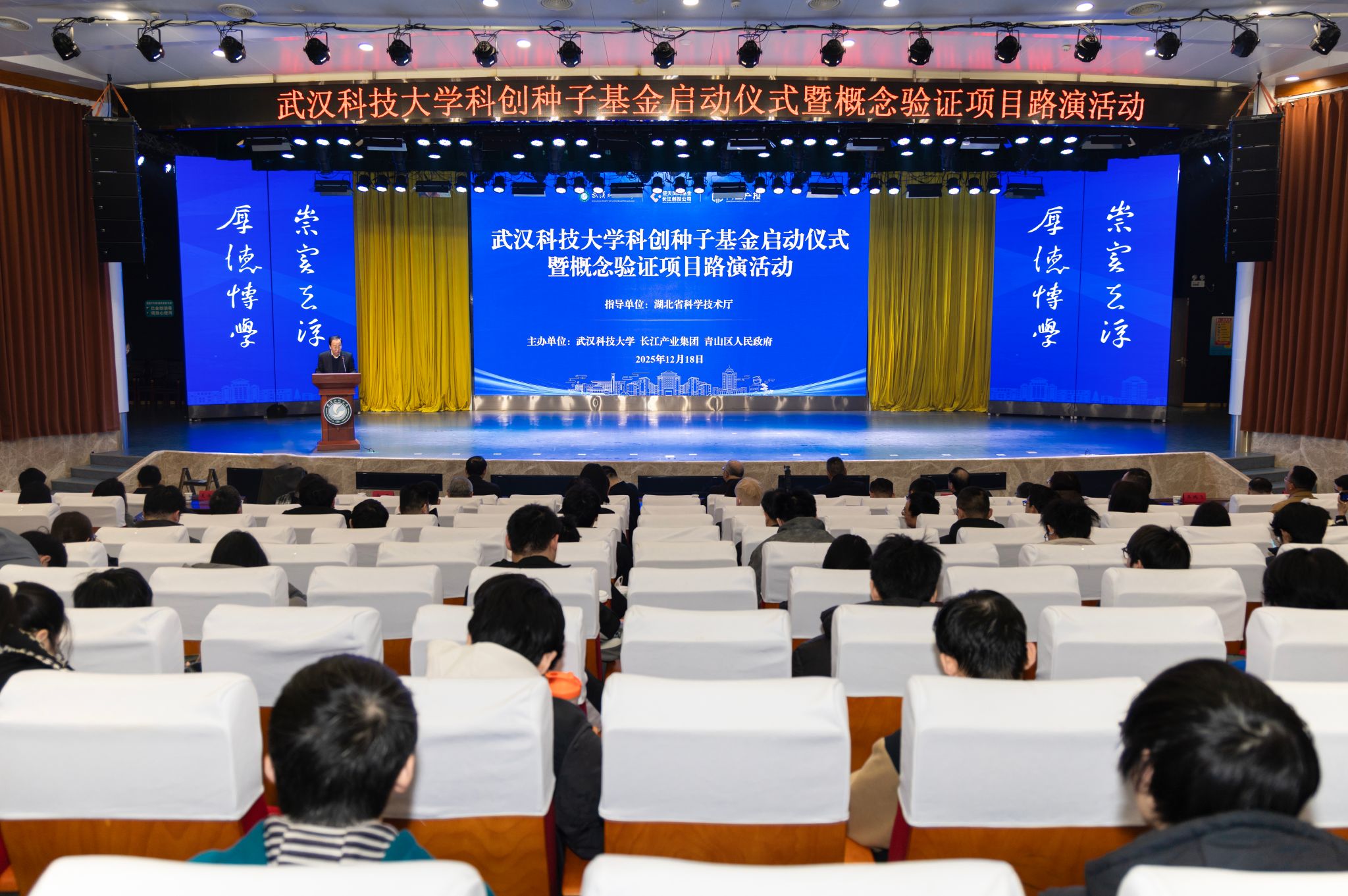 武科大网讯(记者余蔓菲 王钰然) 12月18日,js官网2025年科创种子基金启动仪式暨概念验证项目路演评审会(重点突破项目专场)在青山校区碧园会堂举行。在省财政厅指导和支持下,学校联合长江产业投资集团、武汉市青山区人民政府共同发起设立总规模2亿元的科创种子基金,创下我省省属高校之最。该基金旨在破解科技成果转化“最初一公里”资金瓶颈,贯通科技创新全链条,培育发展新质生产力。