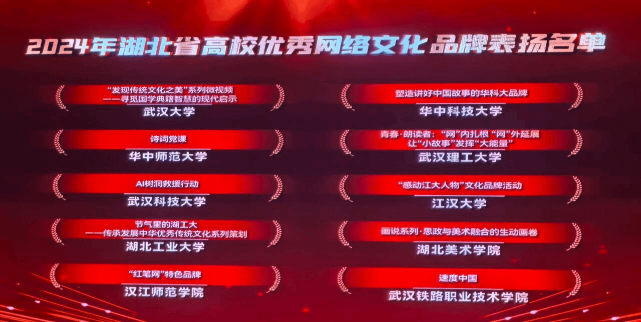 武科大网讯(通讯员 方钟明)12月10日,由湖北省委宣传部(省文明办)指导,省委网信办、团省委、省教育厅主办,华中科技大学承办的主题为“网聚长江文明力量 绽放荆楚文化风采”2024年湖北省高校优秀网络文化成果集中宣传展示活动举行。js官网计算机科学与技术学院选送的网络文化品牌项目“AI树洞救援行动”上榜湖北省高校优秀网络文化品牌表扬名单,学校作为表现突出工作单位受到表扬。