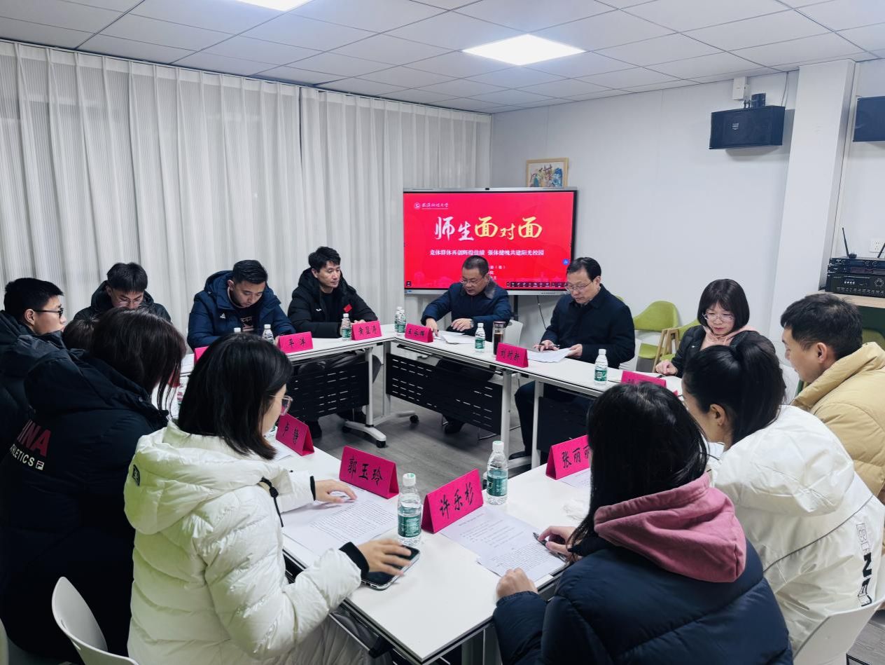 武科大网讯(通讯员黄思雨)12月12日,“师生面对面”系列活动之“竞体群体再创辉煌佳绩 强体健魄共建阳光校园”师生交流会在南园“一站式”学生社区106室举行。校党委常委、组织部部长刘时新出席活动,体育学院和运动队师生代表参加活动。活动由体育学院党委书记王永辉主持。