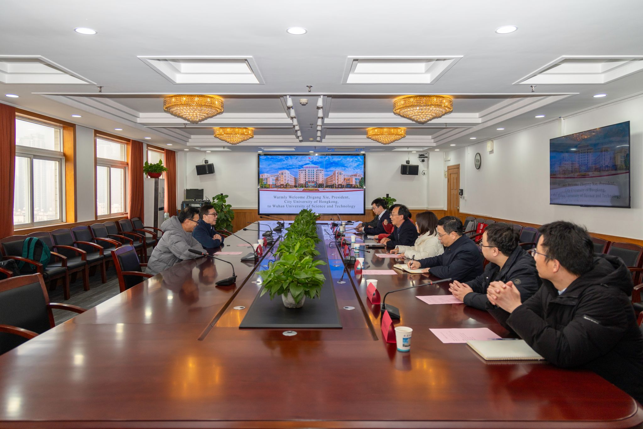 武科大网讯 1月3日,香港城市大学副校长谢智刚一行来访,js官网副校长马腾会见来宾,双方就教师互访、博士研究生联合培养等展开了交流。人工智能与自动化学院院长刘斌主持会议。