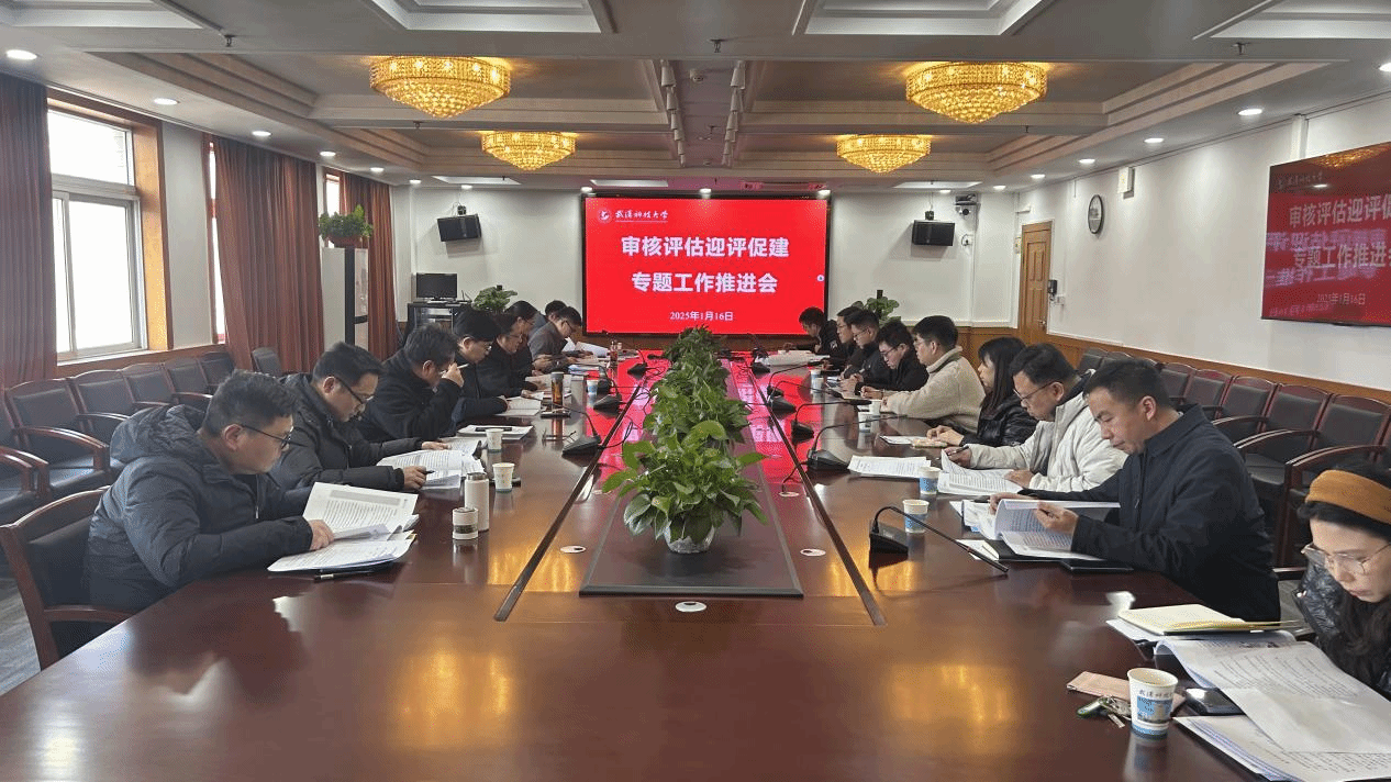 武科大网讯(通讯员邓小龙)1月16日,学校举行审核评估迎评促建专题工作推进会,重点围绕上一阶段审核评估自评报告和相关评建材料修审情况开展研讨,并研究部署下一阶段任务。校党委常委、副校长吕勇出席会议,会议由本科生院执行院长丁宇主持。