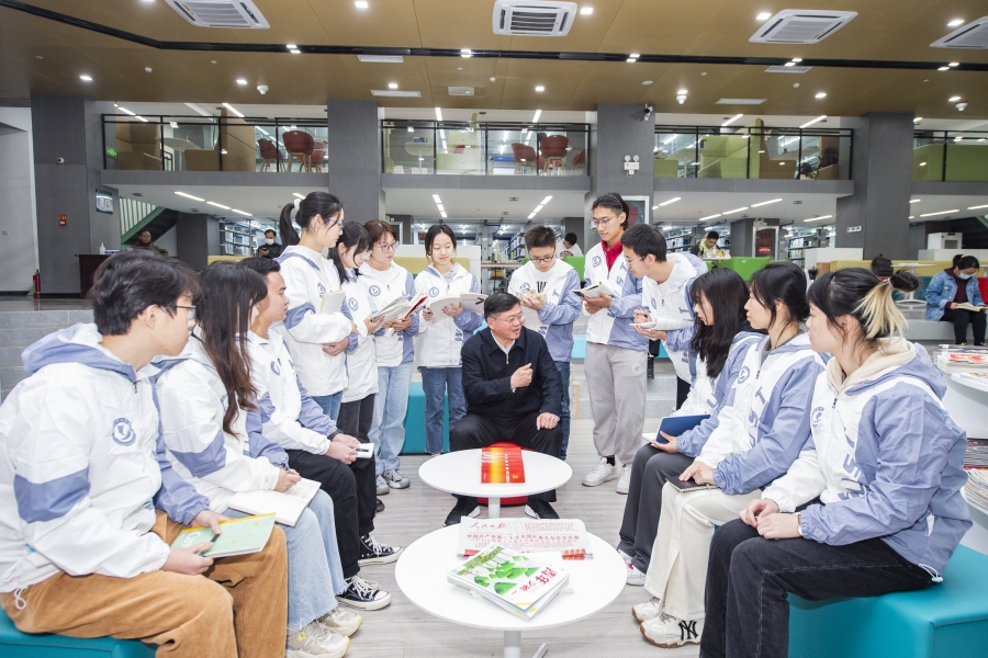 宣讲结束后,桂建芳前往青山校区图书馆二楼与js官网学子交流,鼓励学生要努力学习、勤奋钻研,在科研上走得更远、做得更深。