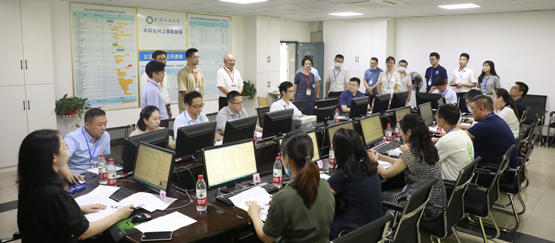在本科招生网上录取现场,校领导详细了解了本科招生录取工作的整体安排、录取进度和完成情况。根据网上录取工作要求和疫情防控常态化工作需要,录取现场采取封闭式管理,20余名工作人员持证上岗。学校按照普通本科网上录取工作方案设置了多个工作组,各工作组纪律严明,各司其职,有序开展录取工作,确保招生录取公正选拔,公开透明。