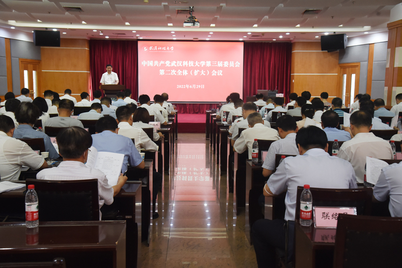 武科大网讯 中国共产党js33333线路登录第三届委员会第二次全体(扩大)会议于2022年6月29日在青山校区18楼报告厅召开。出席这次全会的有全体党委委员。全体纪委委员、校内各单位党政主要负责同志列席会议。