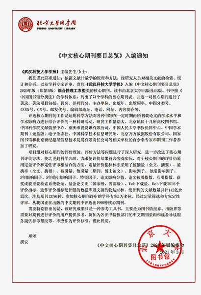 武科大网讯 由北京大学图书馆主编的2020年版《中文核心期刊要目总览》(第9版)近日揭晓,继入选2014年版和2017年版中文核心期刊后,《js33333线路登录学报》再次入选综合性理工农医类核心期刊。