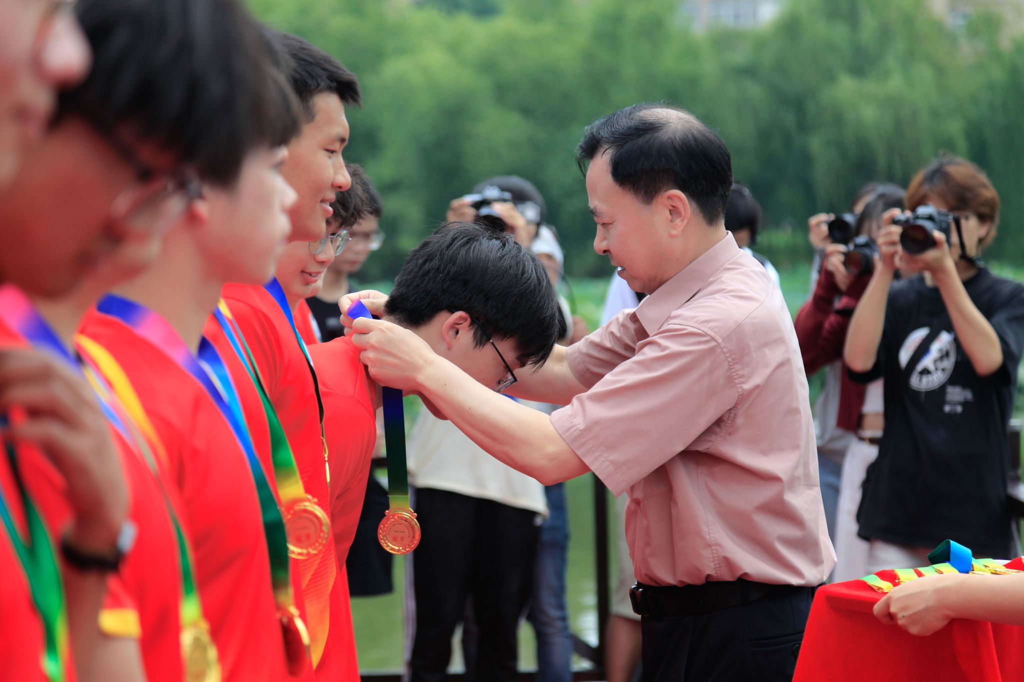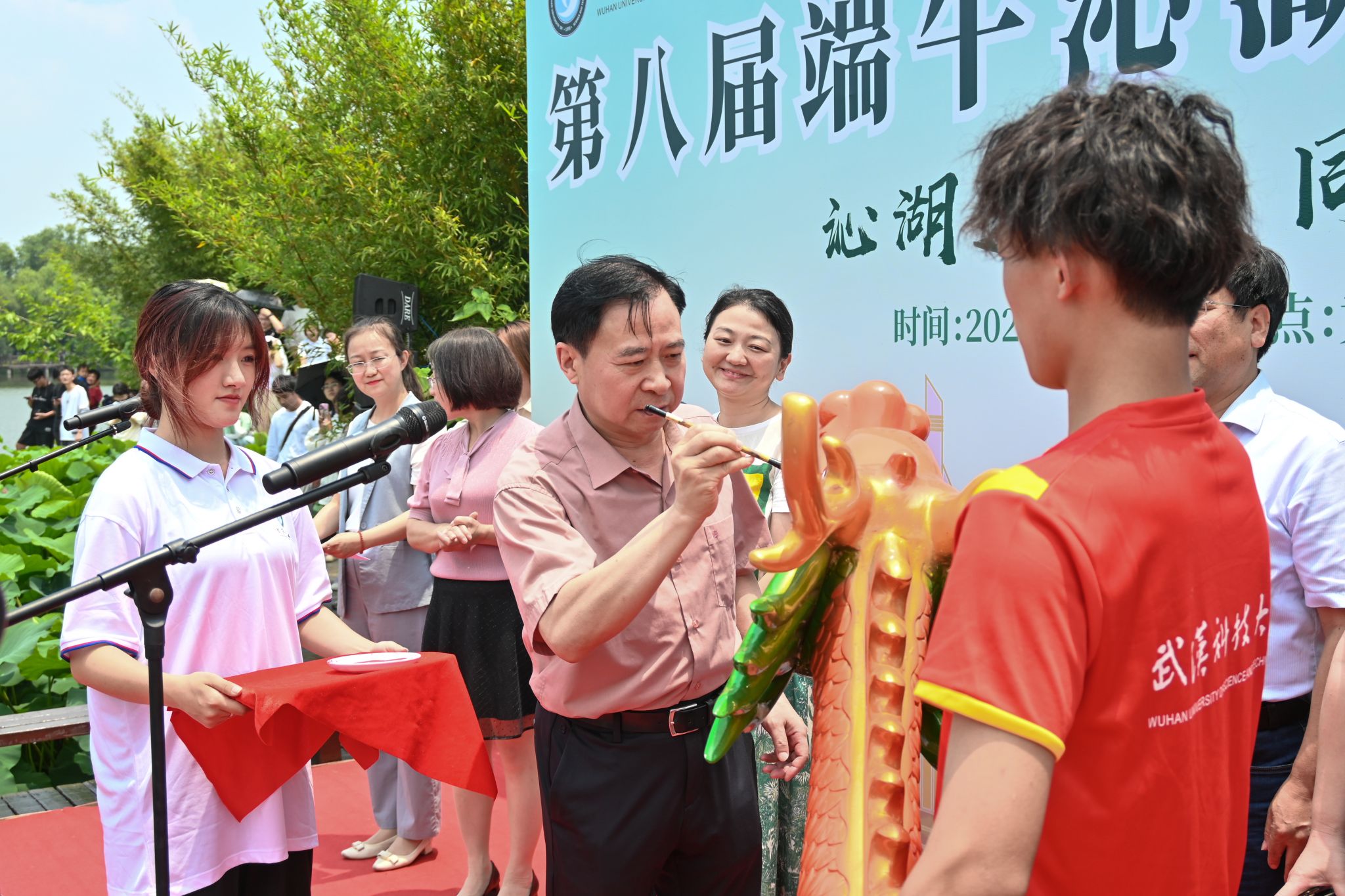 校党委副书记孙国胜为龙舟点睛 李钰昌摄