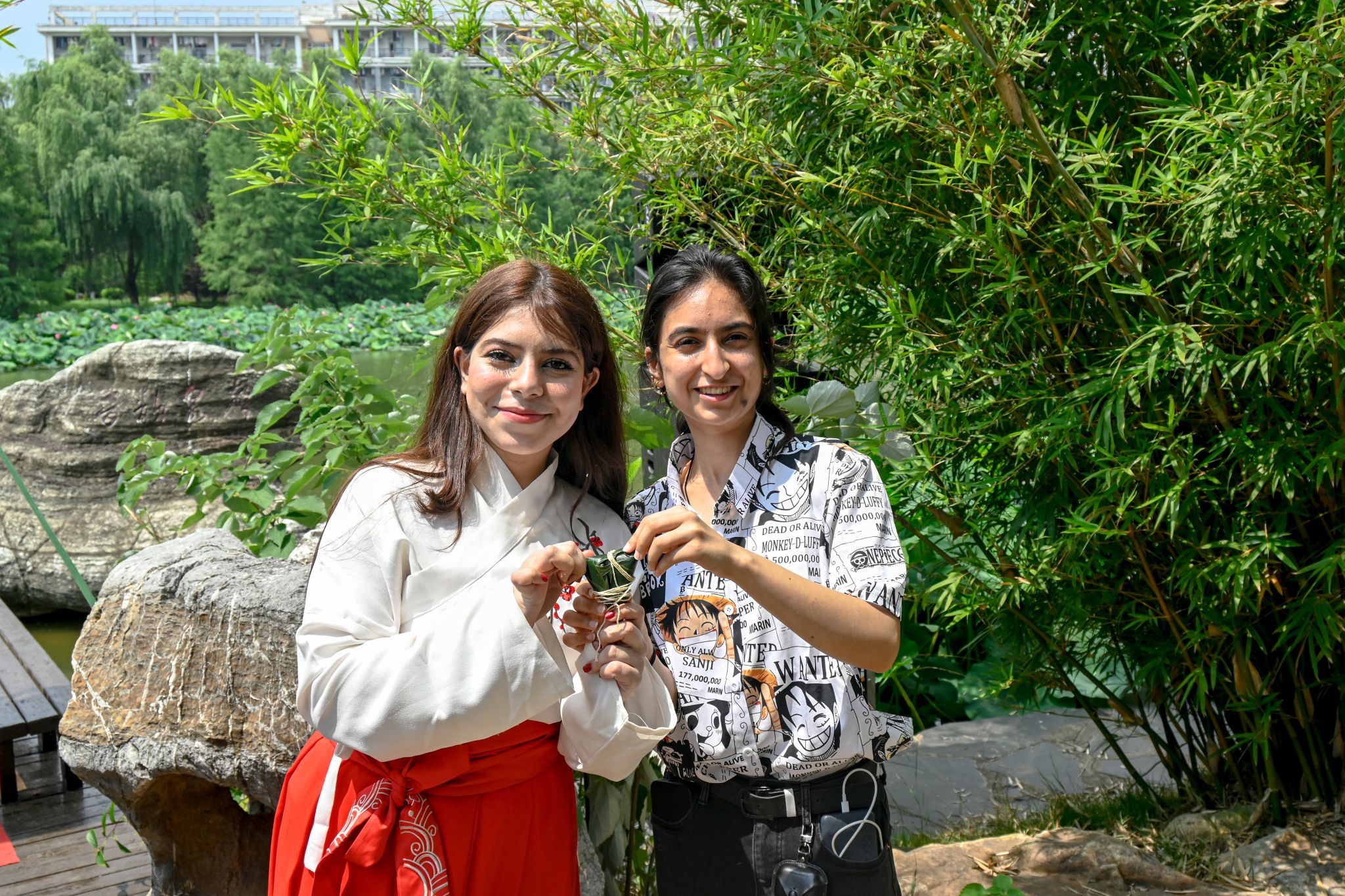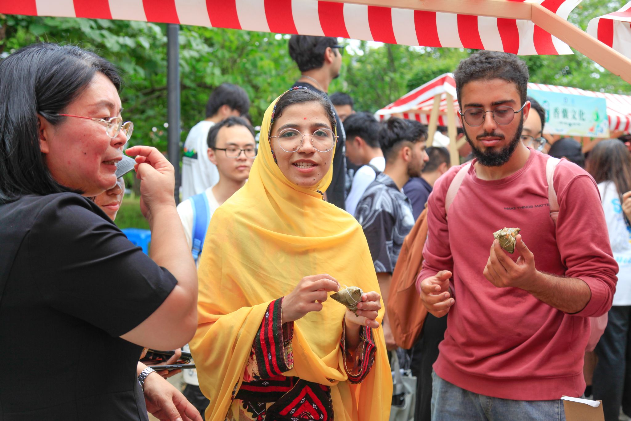巴基斯坦留学生向粽子加入该国特色香料 李周阳摄