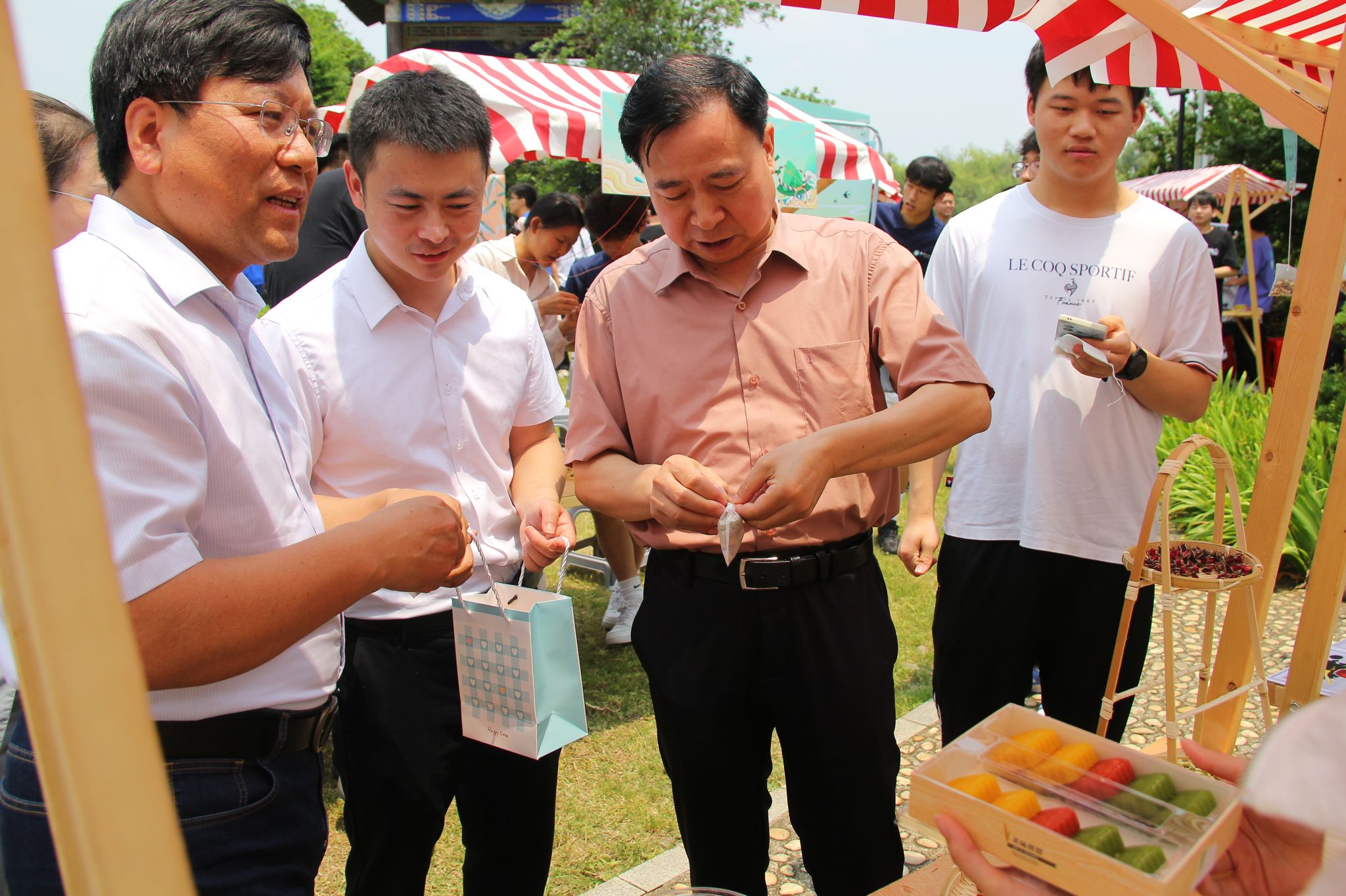 向校党委副书记孙国胜讲解文化节项目 李钰昌摄