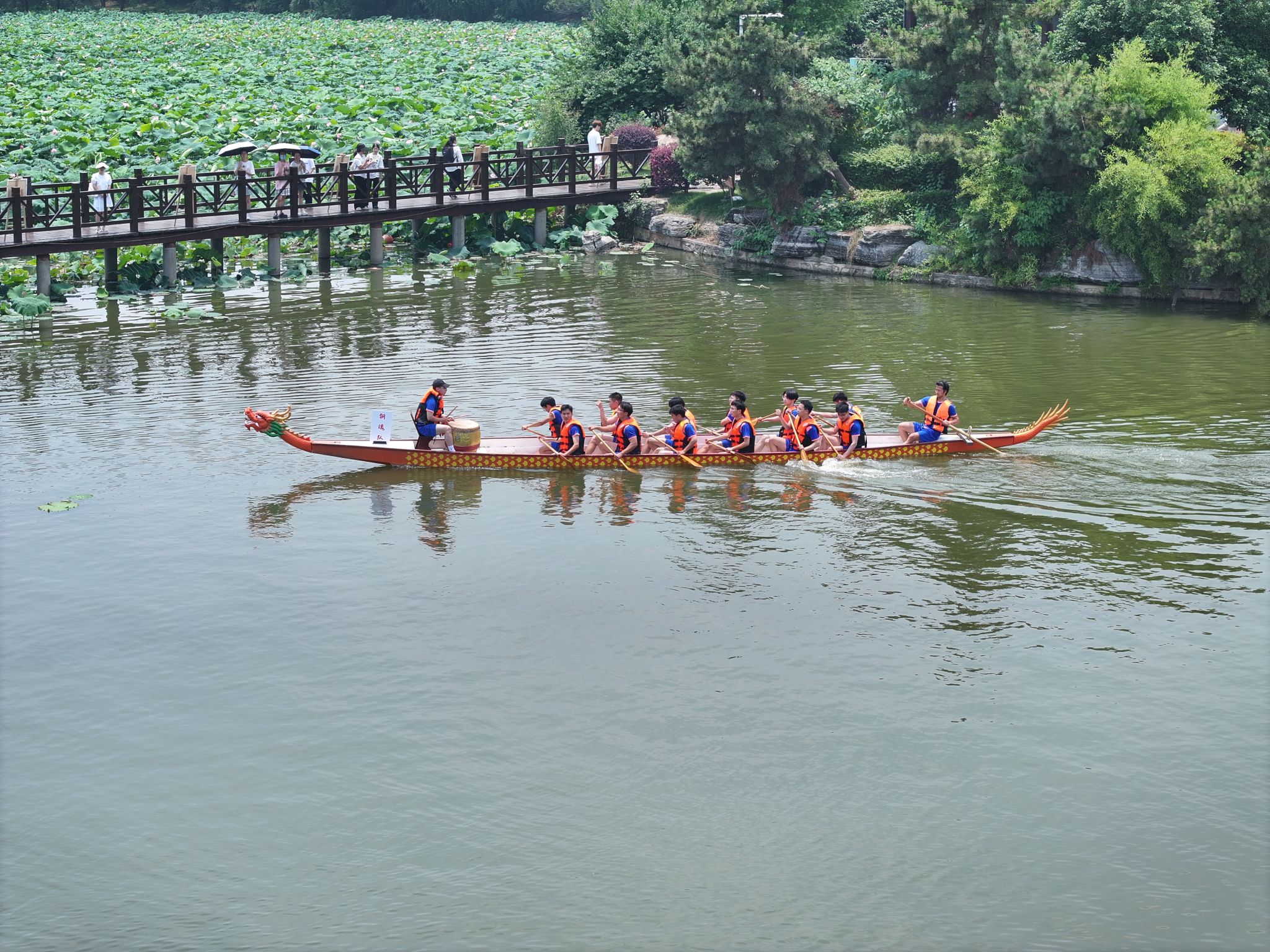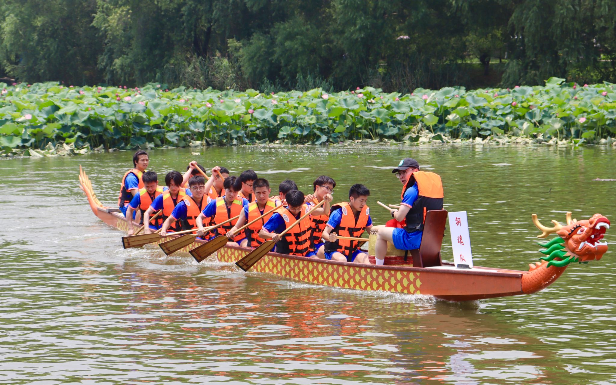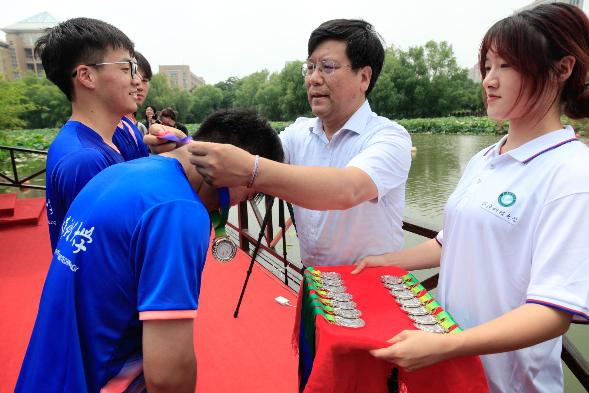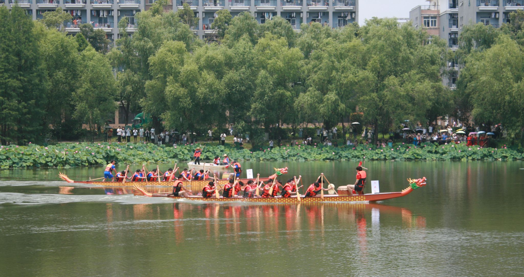 6月6日中午,js官网于沁湖畔举办第八届“沁湖连心·同舟共济”端午龙舟友谊赛,副校长沈季伟致辞,校团委副书记向方新宣读赛事竞赛规则、运动员代表宣誓,党委副书记孙国胜为龙舟点睛。由js官网龙舟协会成员组成的“沁水”队和由研究生组成的“钢魂”队角逐龙舟总决赛冠军,“沁水”队获胜。现场还设置了系列端午文化主题展演,不少留学生参与包粽子、做艾草,体验端午传统文化。