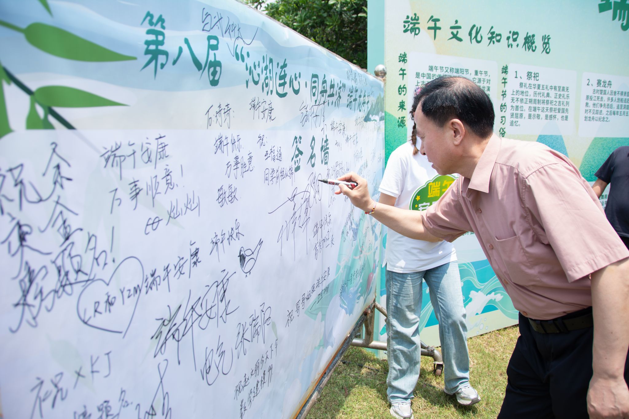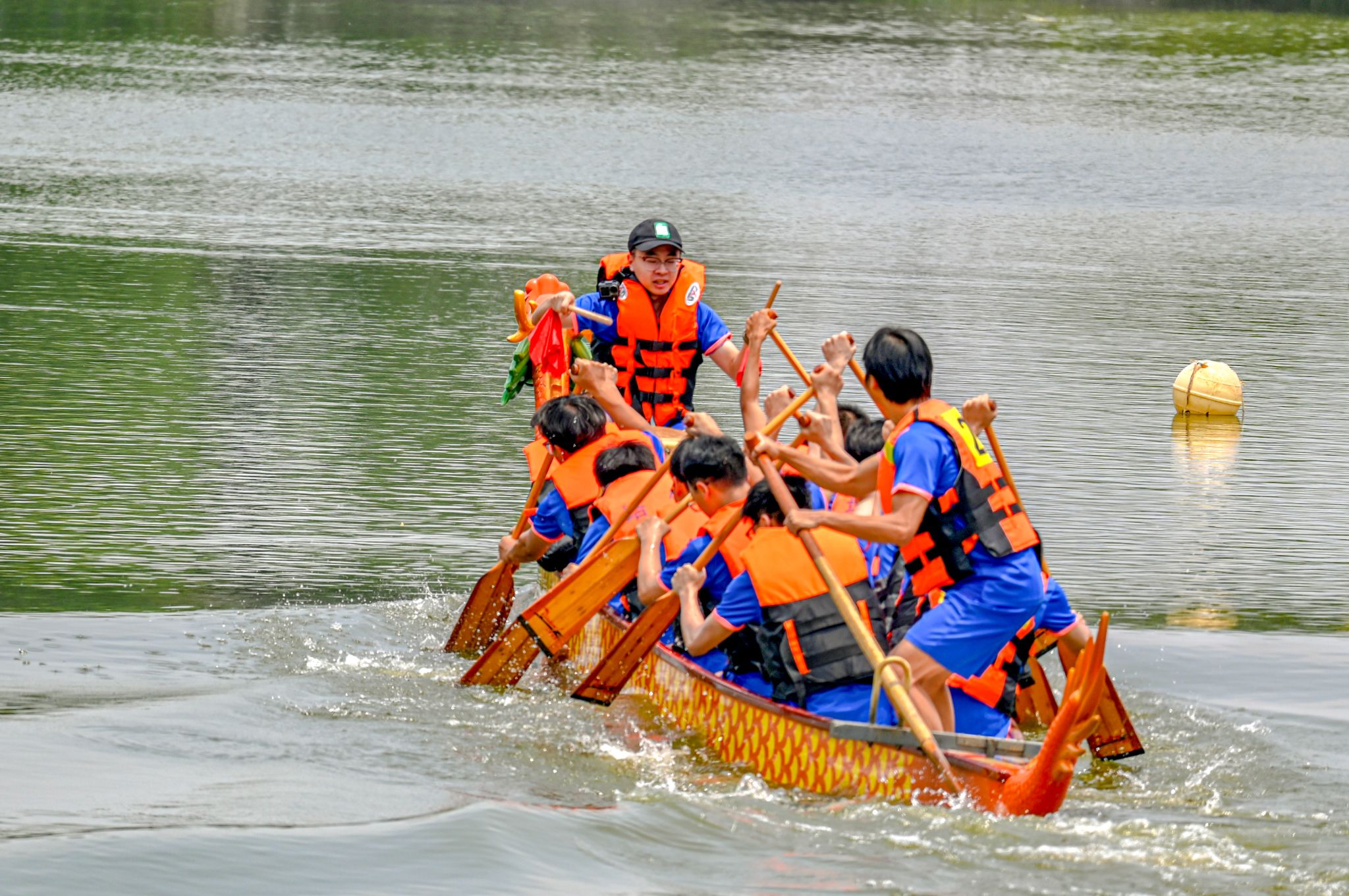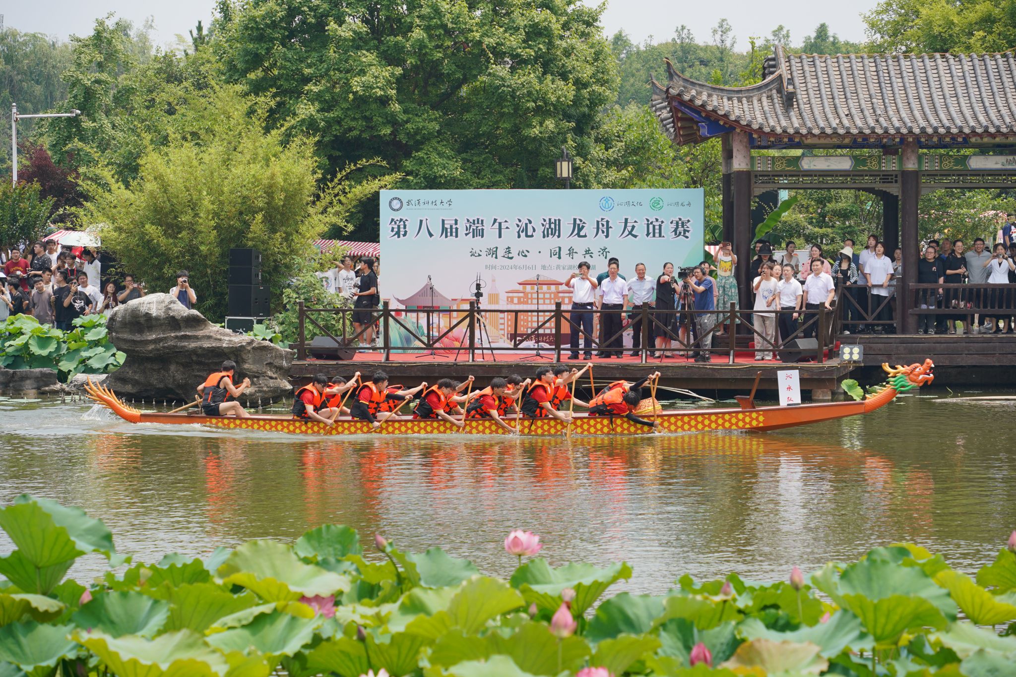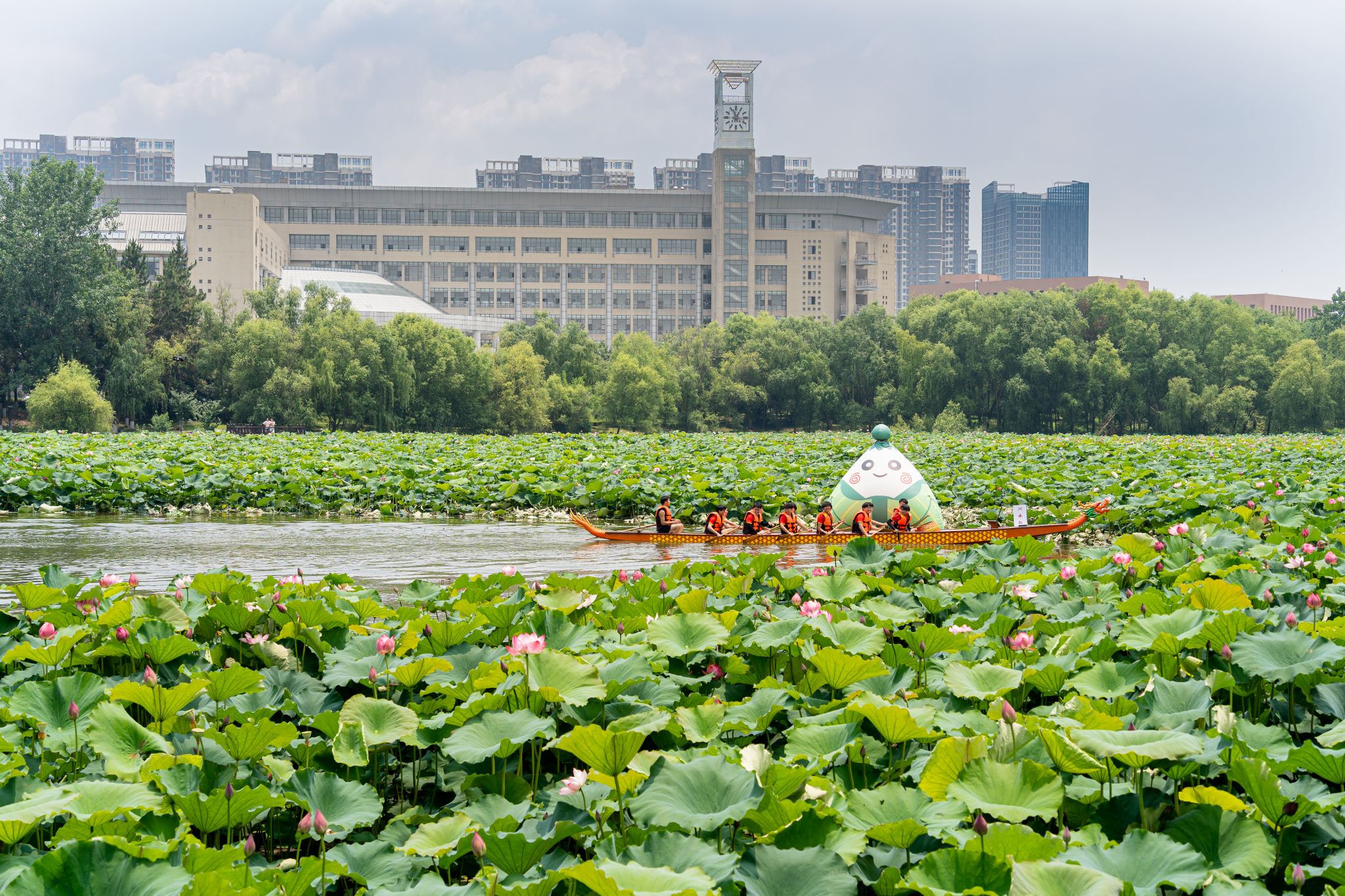 6月6日中午,js官网于沁湖畔举办第八届“沁湖连心·同舟共济”端午龙舟友谊赛,副校长沈季伟致辞,校团委副书记向方新宣读赛事竞赛规则、运动员代表宣誓,党委副书记孙国胜为龙舟点睛。由js官网龙舟协会成员组成的“沁水”队和由研究生组成的“钢魂”队角逐龙舟总决赛冠军,“沁水”队获胜。现场还设置了系列端午文化主题展演,不少留学生参与包粽子、做艾草,体验端午传统文化。