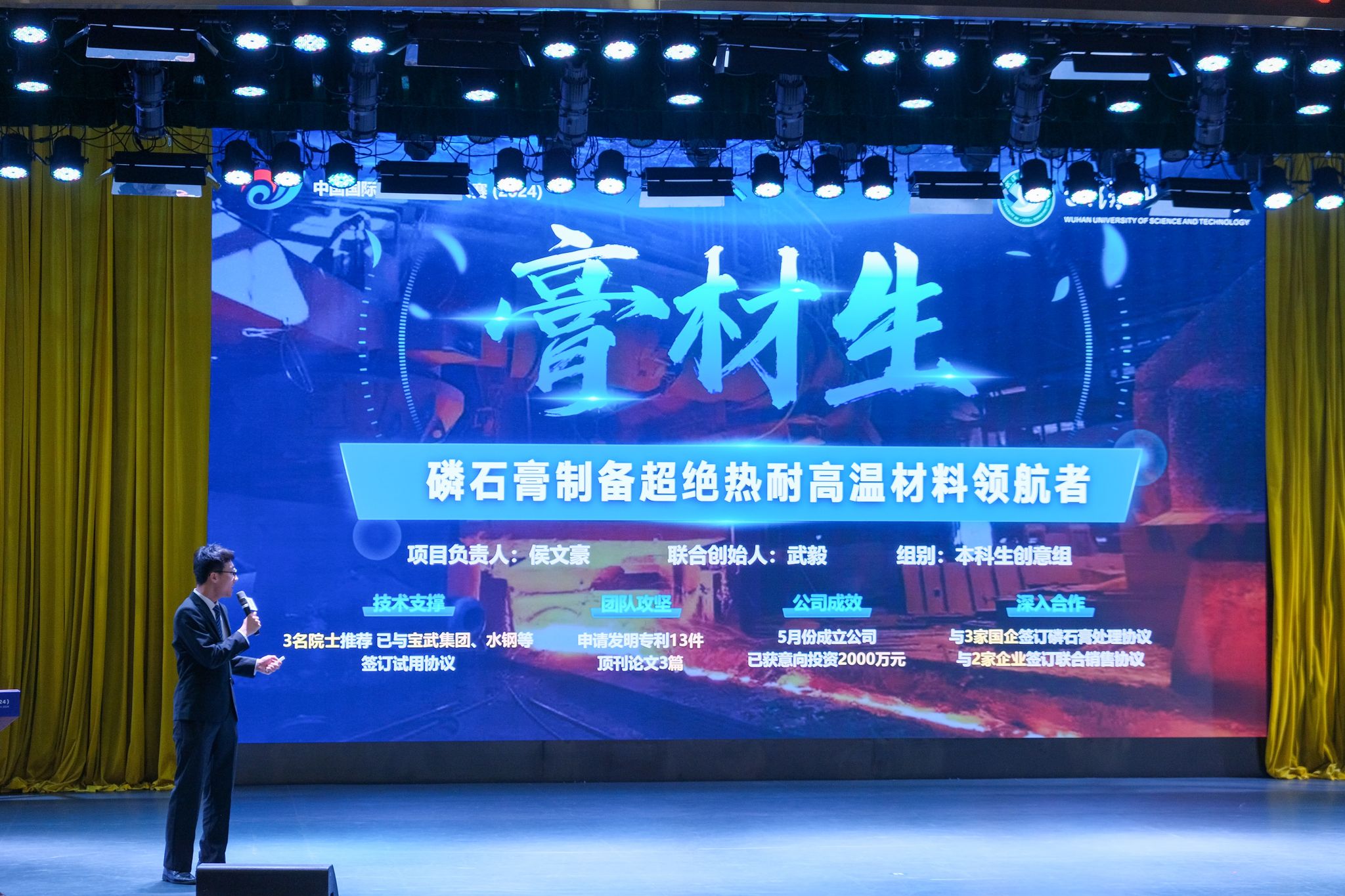 6月5日,中国国际大学生创新大赛(2024)js33333线路登录金奖排位赛于js官网青山校区碧园会堂成功举办。《膏材生——磷石膏制备超导耐高温材料领航者》、《不瘤余地——全球首个治疗肉瘤的CAR-T药物研发》、《海洋钢骨——国产防锈蚀装备钢材引领者》分别位列第一、二、三名。(熊雄)