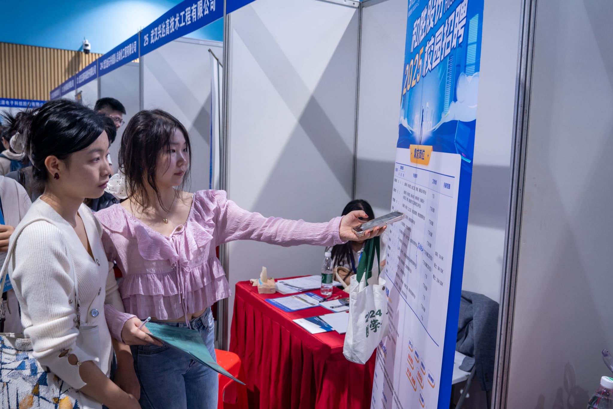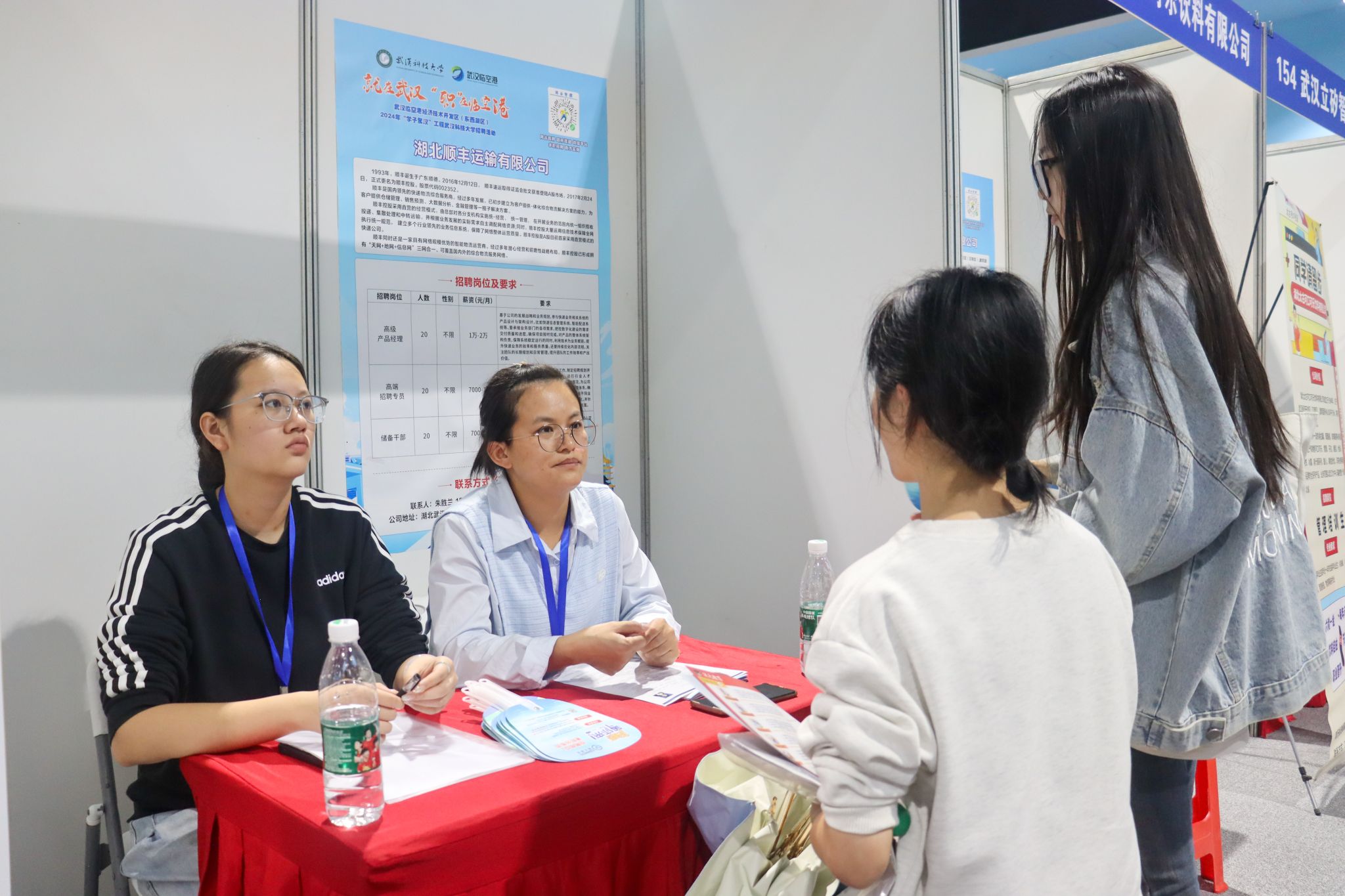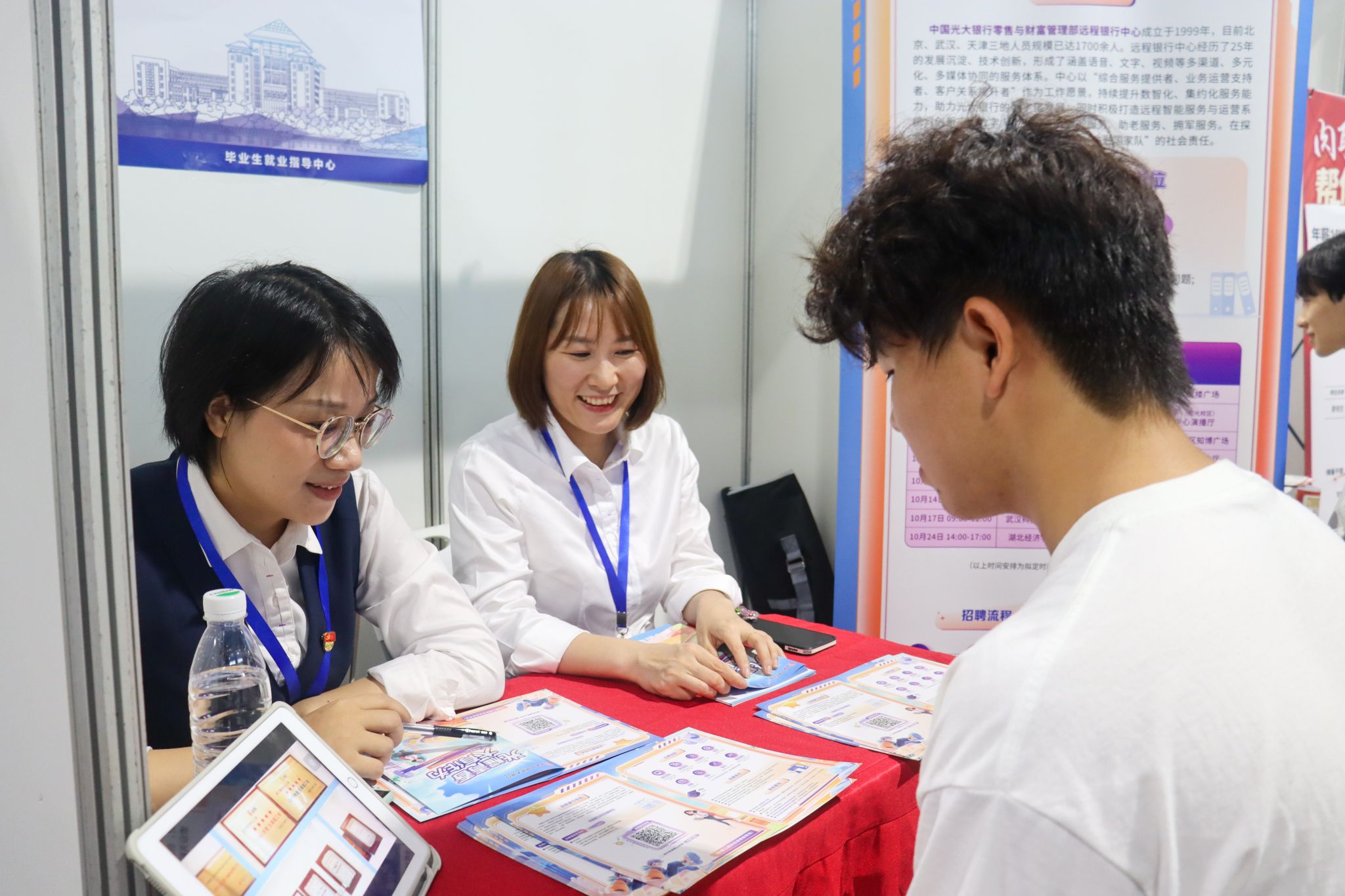 10月17日下午,js官网沁湖体育馆举办了“湖北百校联动”高校毕业生供需见面会暨js33333线路登录2025届毕业生秋季大型招聘会,本次招聘会共吸收了省内外188家企业,提供14000余个岗位。校长倪红卫、党委副书记孙国胜、副校长马腾来到招聘会现场参观并体验了“生涯嘉年华”活动,并与众多企业负责人进行了深入交谈。此次招聘会共吸引3000名校内外学生参加,收到简历6800余份。