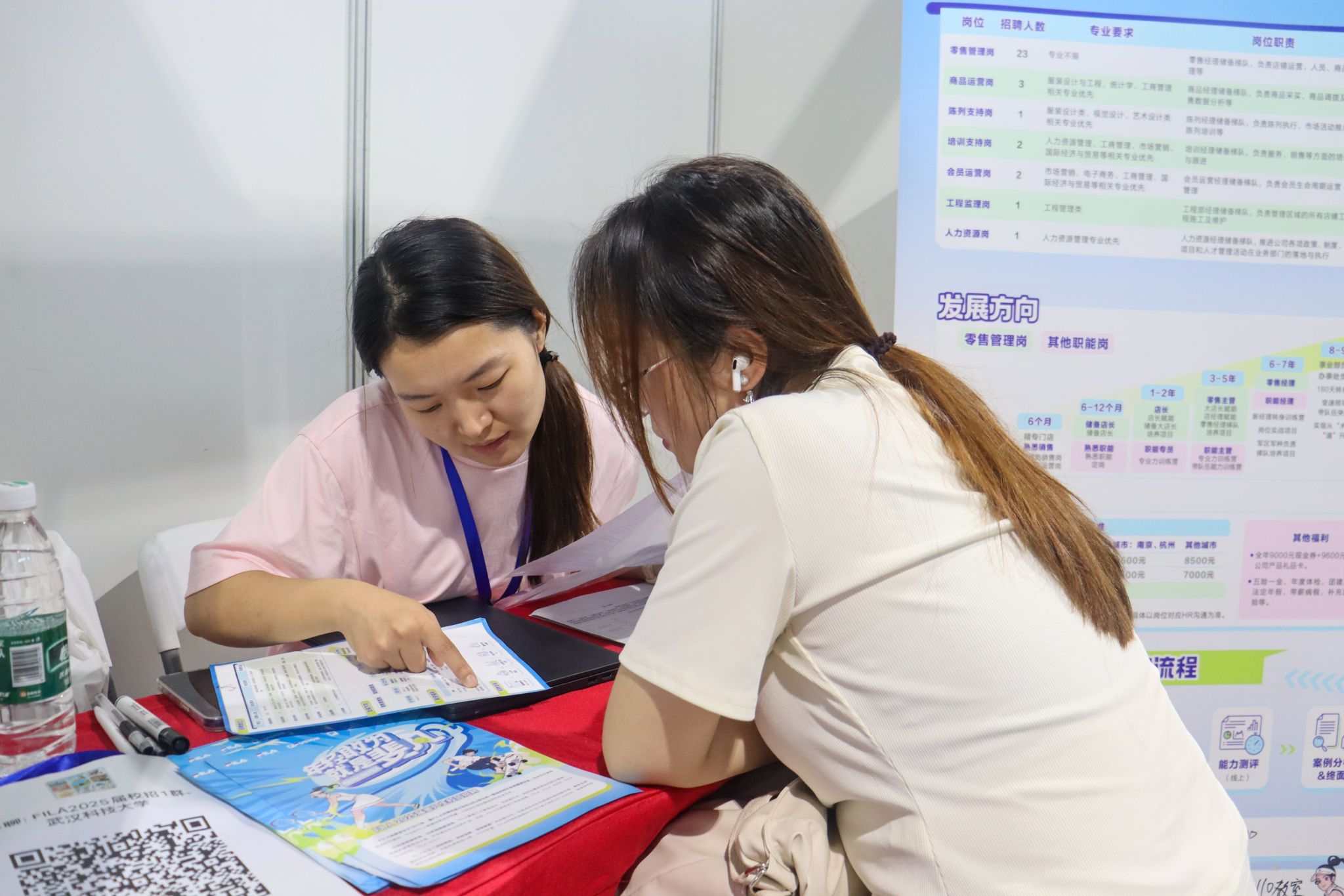斐乐服饰有限公司负责人同应聘者沟通并给予赞赏 高文帅摄