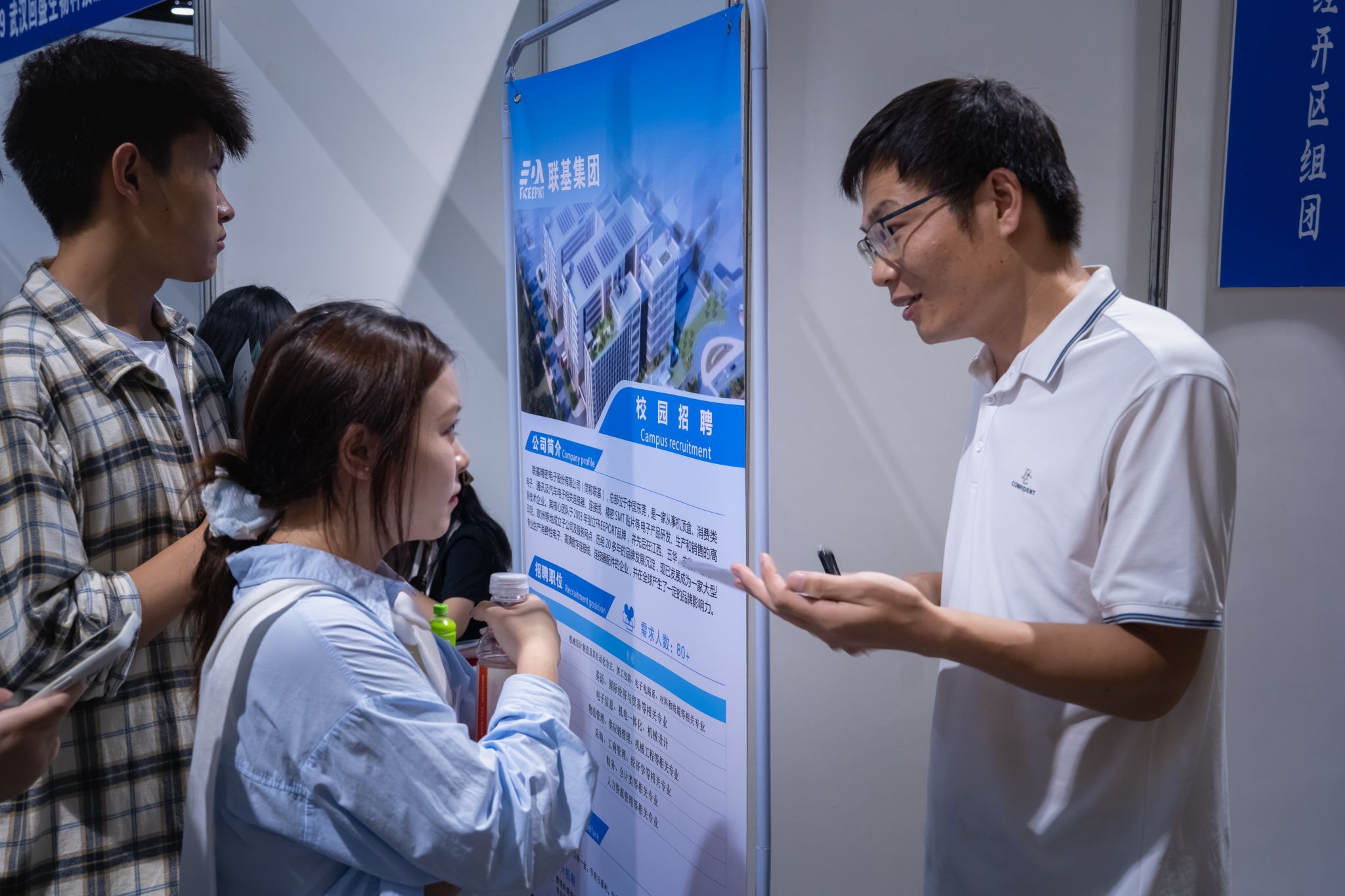 联基集团招聘现场负责人与应聘者交流 高文帅摄
