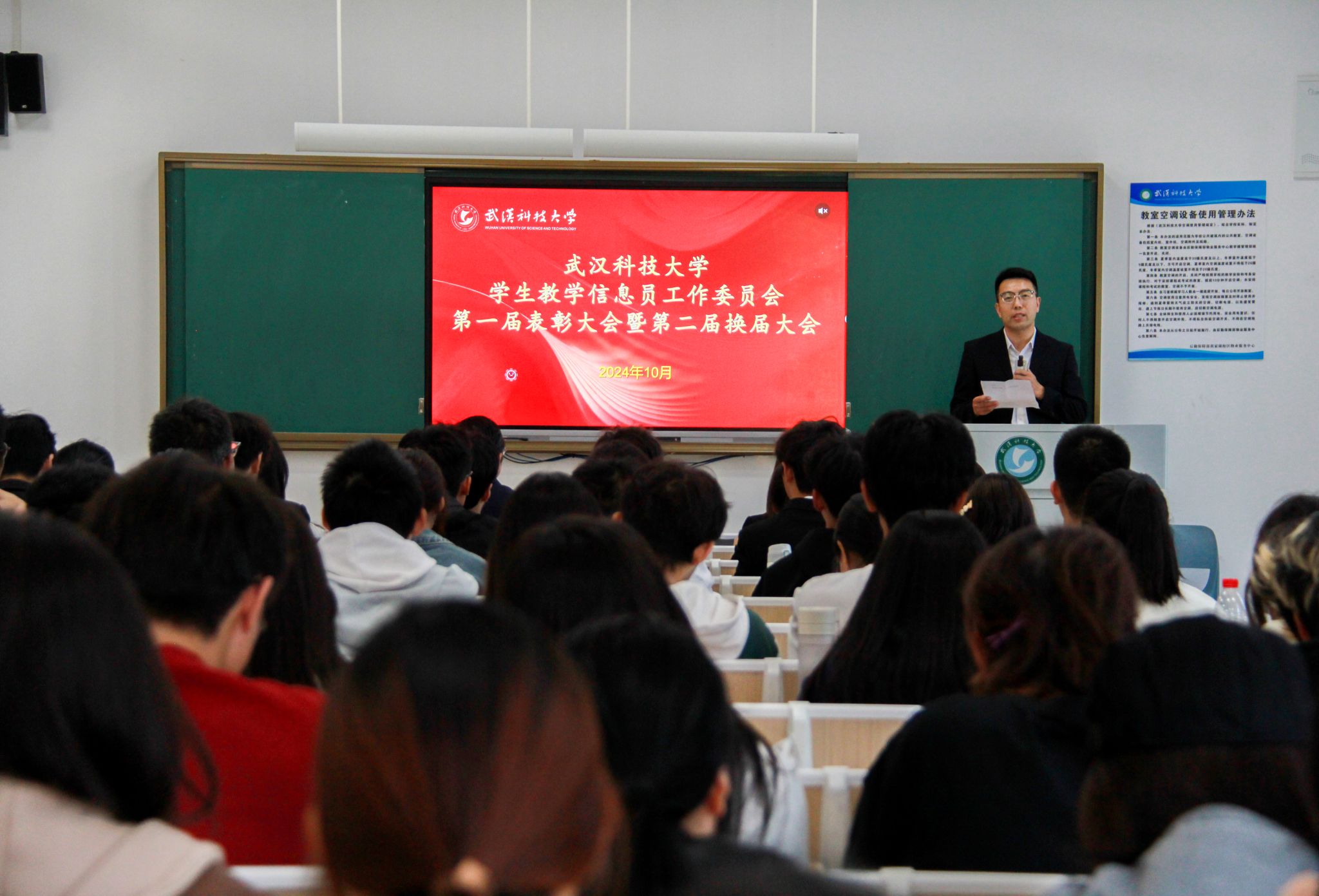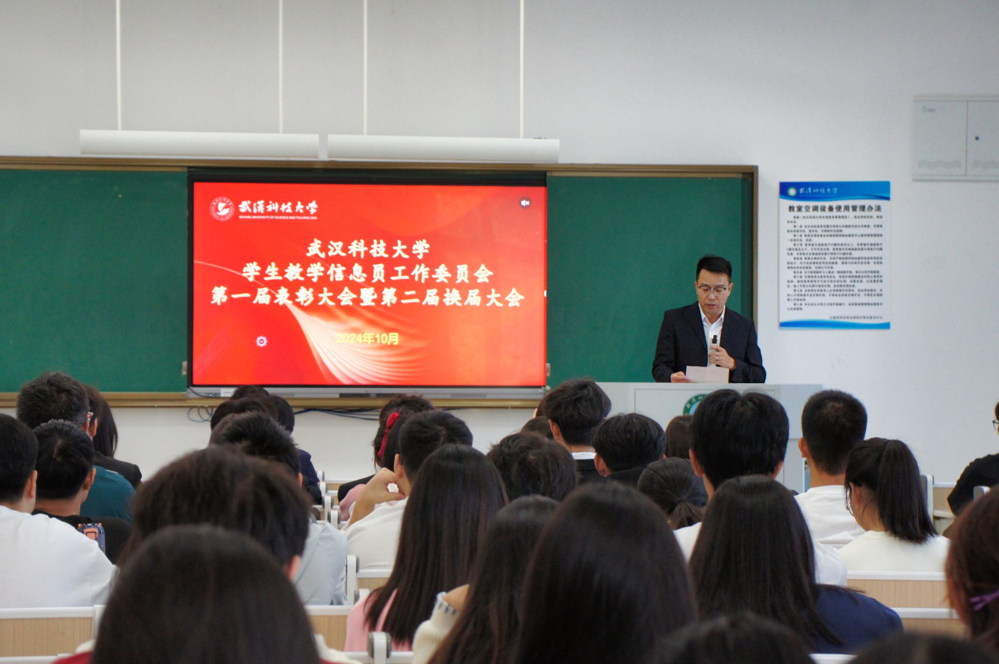 js官网学生教学信息员工作委员会(学信委)表彰大会暨第二届换届大会,于10月31日在黄家湖校区教11楼B区110教室召开。会议表彰了去年工作优秀的学生信息员,并对新加入的学生信息员表示欢迎,对新学期学生信息员的工作做了一些要求。出席本次会议的嘉宾有本科生院执行院长丁宇、教学质量管理办公室主任刘波、崔亚岚老师。会议由刘波主持。(王翔宇)