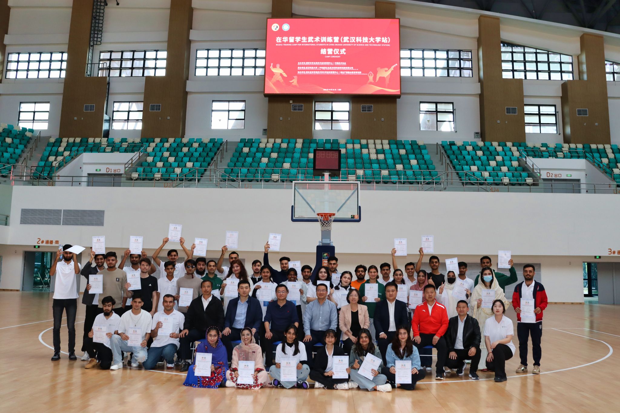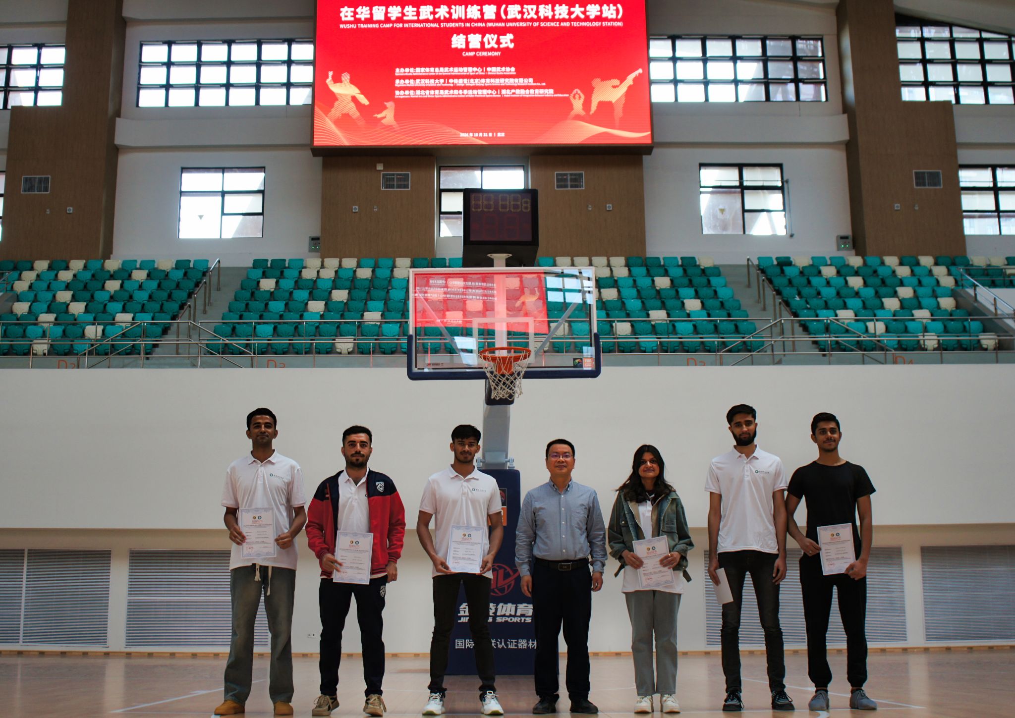 10月31日,由国家体育总局武术运动管理中心主办的在华留学生武术训练营(js33333线路登录站)结营仪式在沁湖体育馆成功举办。体育学院党委书记王永辉等领导出席本次结营仪式。为期一个月的武术训练营里28名国际学生在王路瑶的带领下学习了中华剑术,中华太极武术等。各国学生们都表示会将武术带到自己的国家,让自己国家的武术爱好者有机会接触武术这项运动,传扬中华文化。