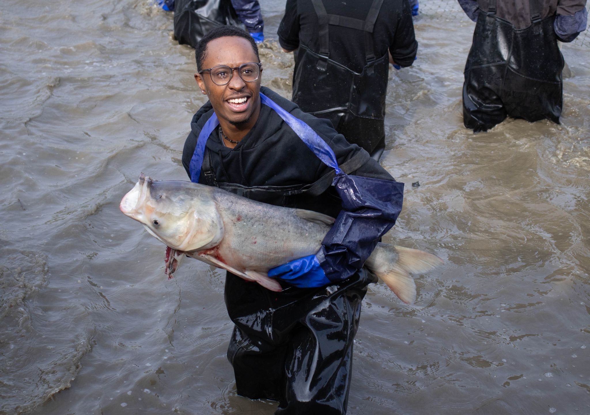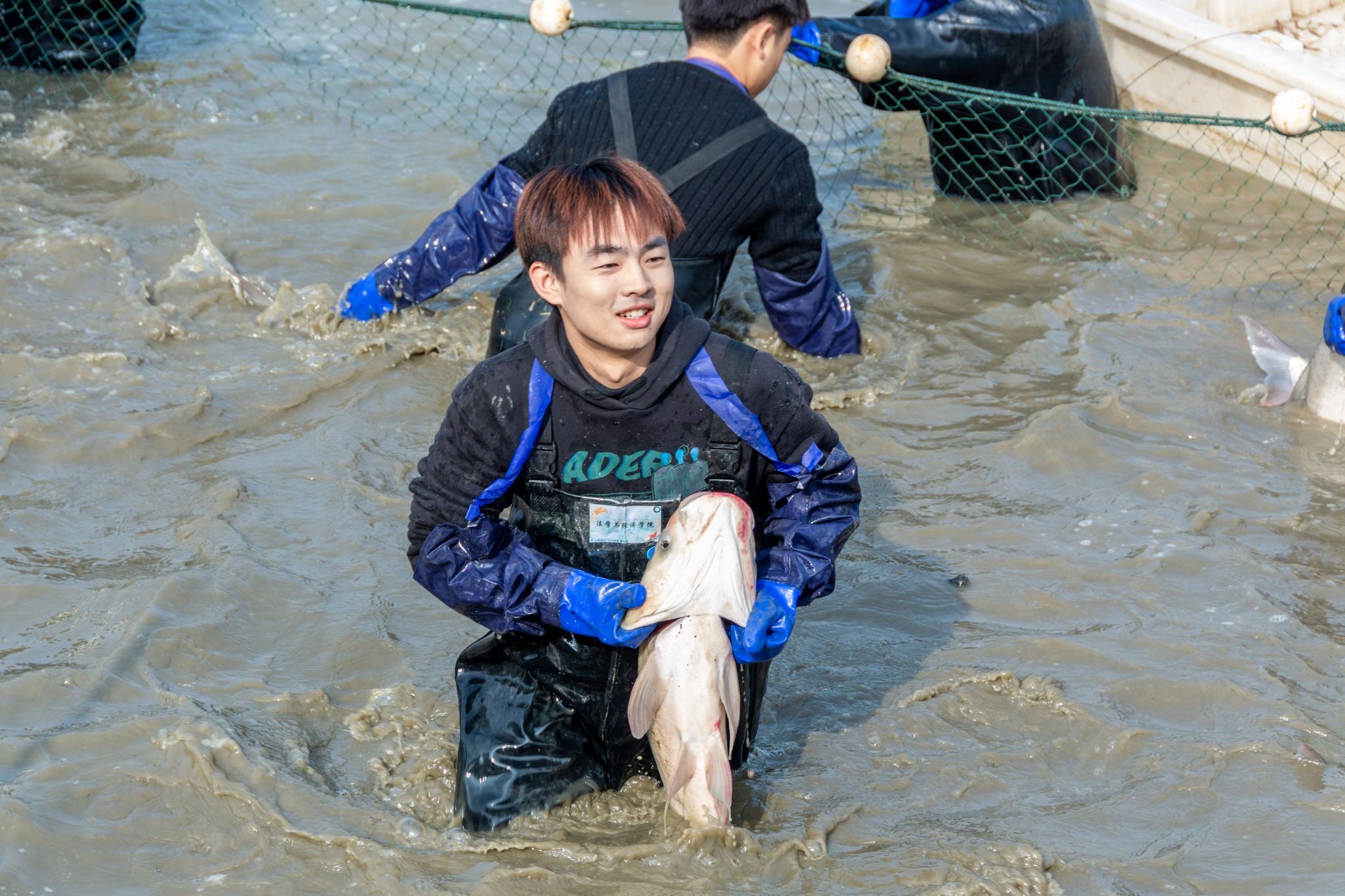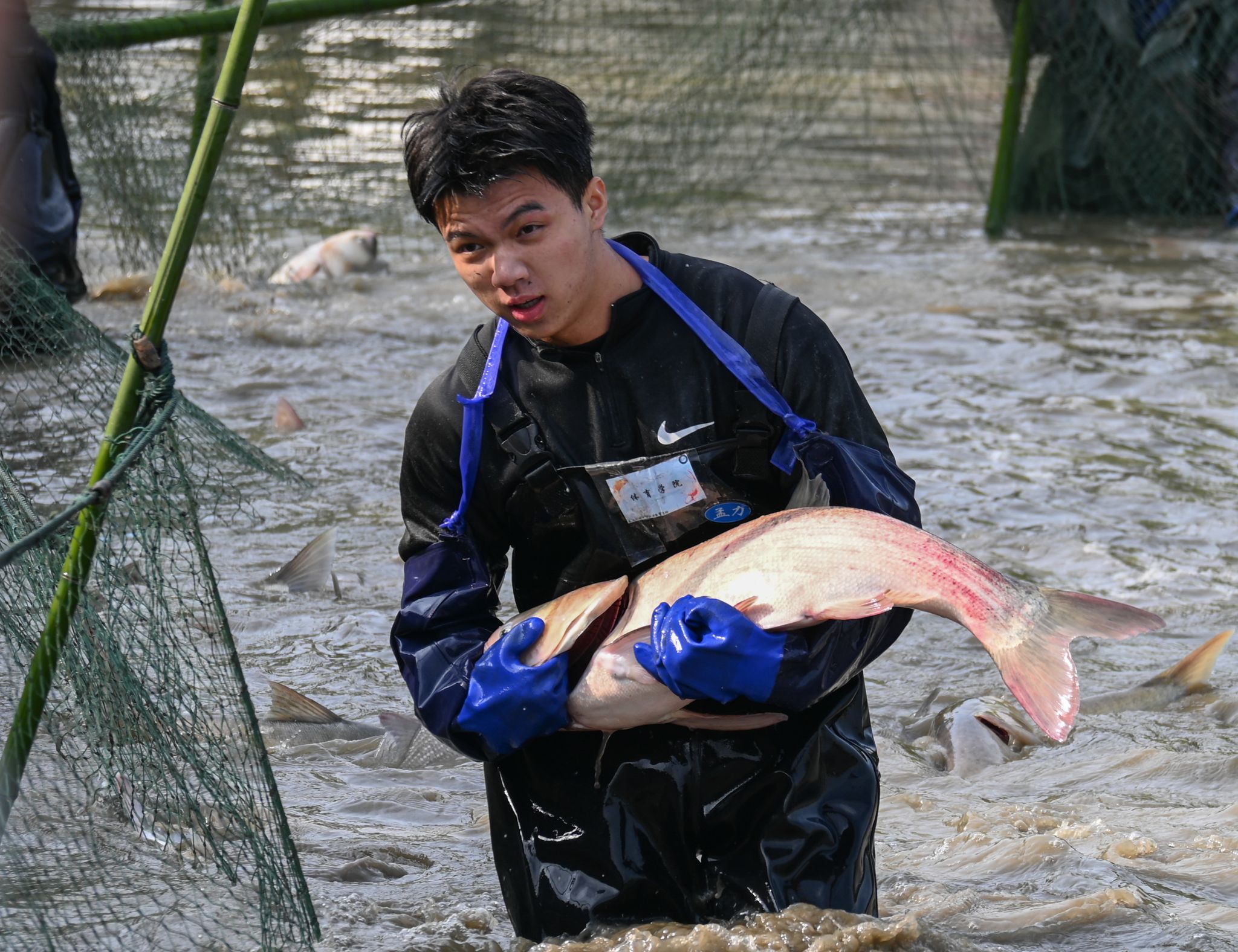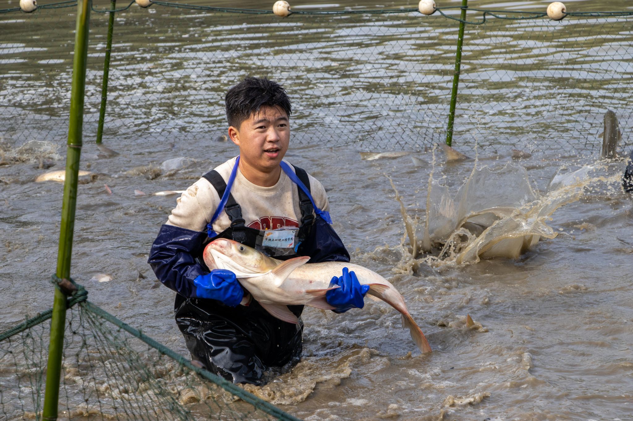 生科院两手抓鱼特写 陈楷林摄