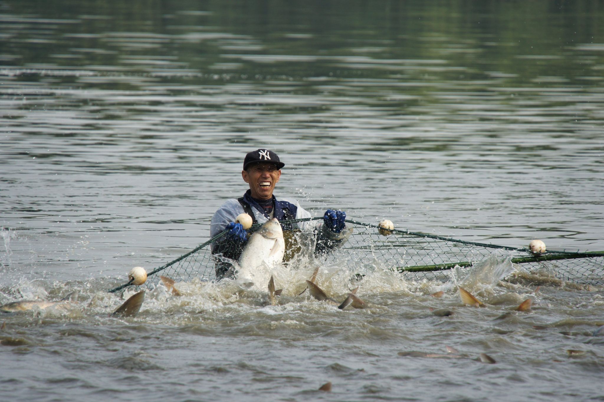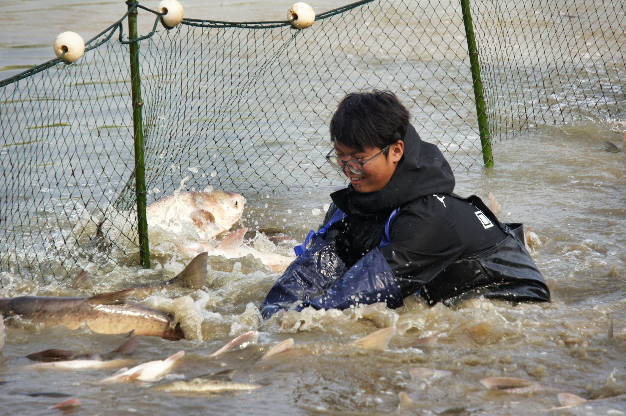 开心的捞鱼同学 特写 吴毅萌摄