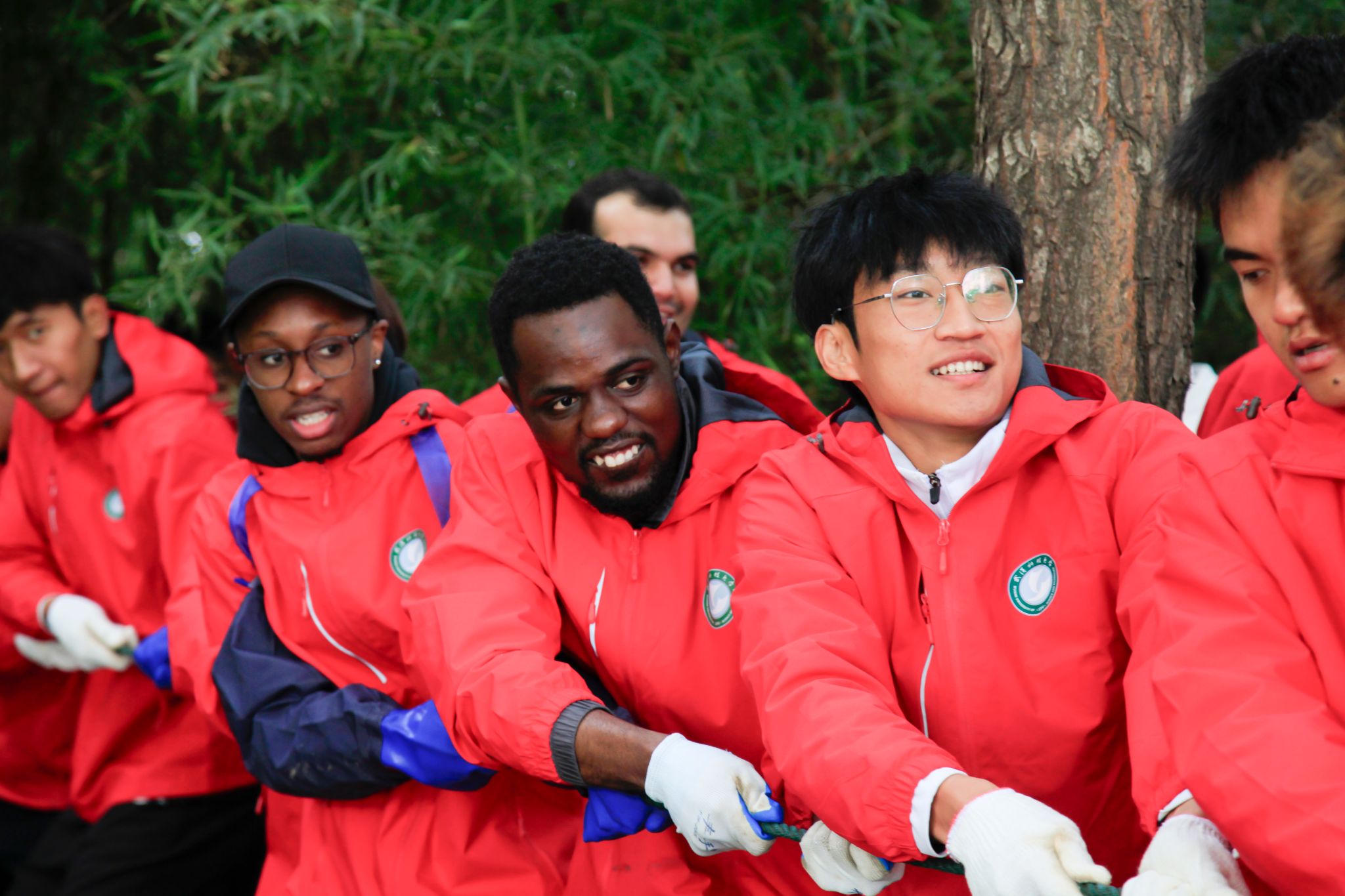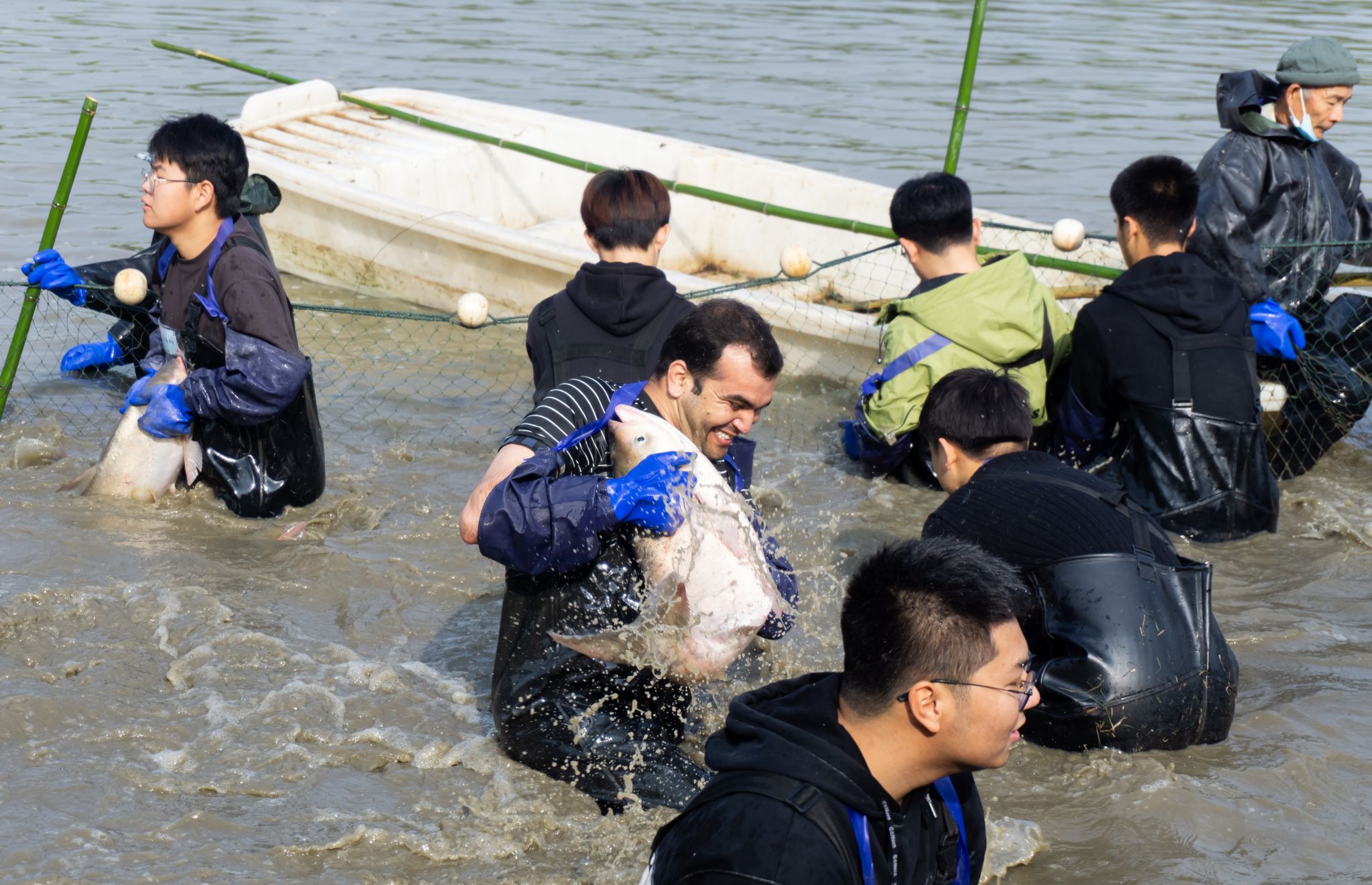 留学生拉网特写 王铭浩摄
