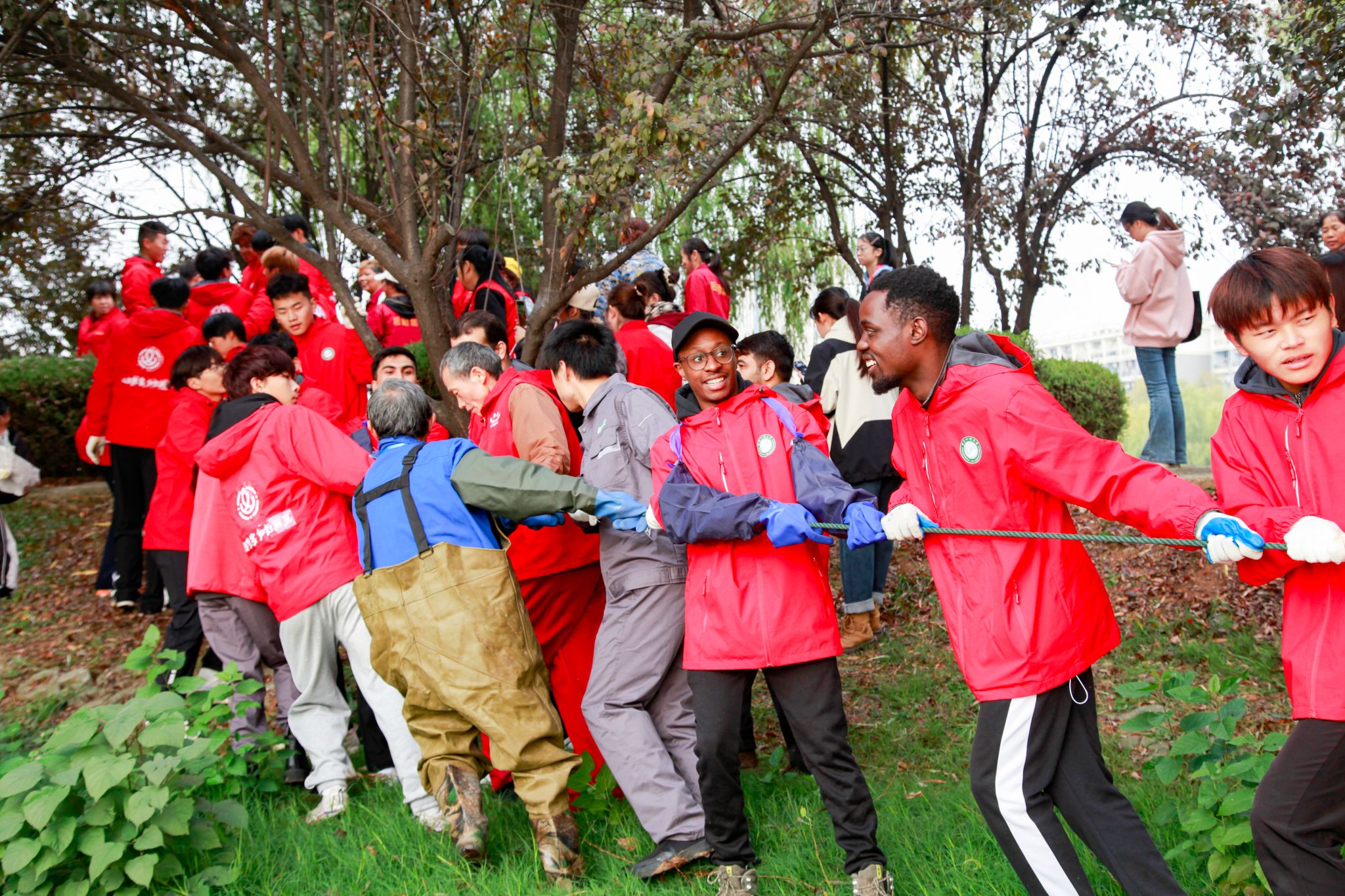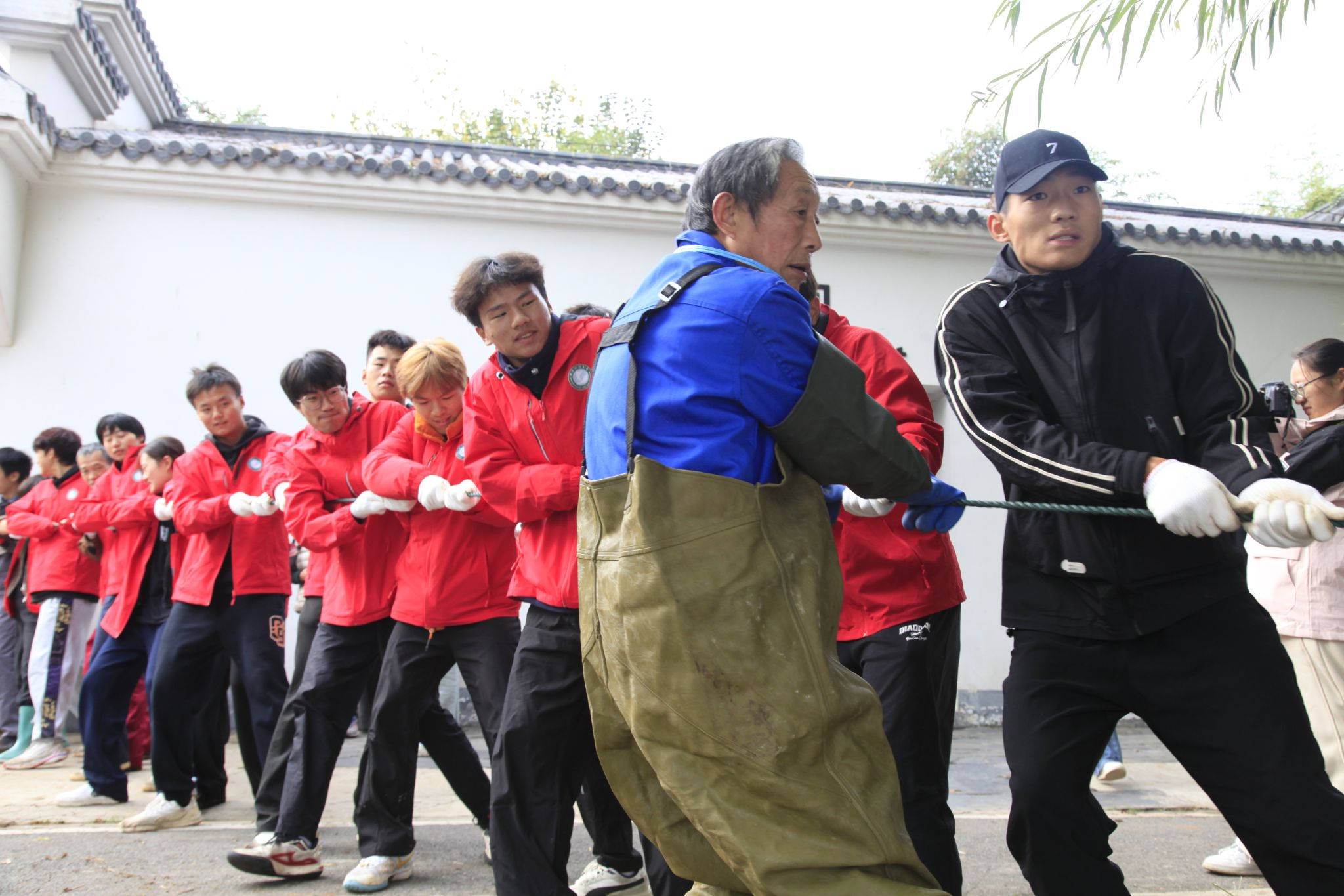 同学们喊号子拉鱼 吴毅萌摄