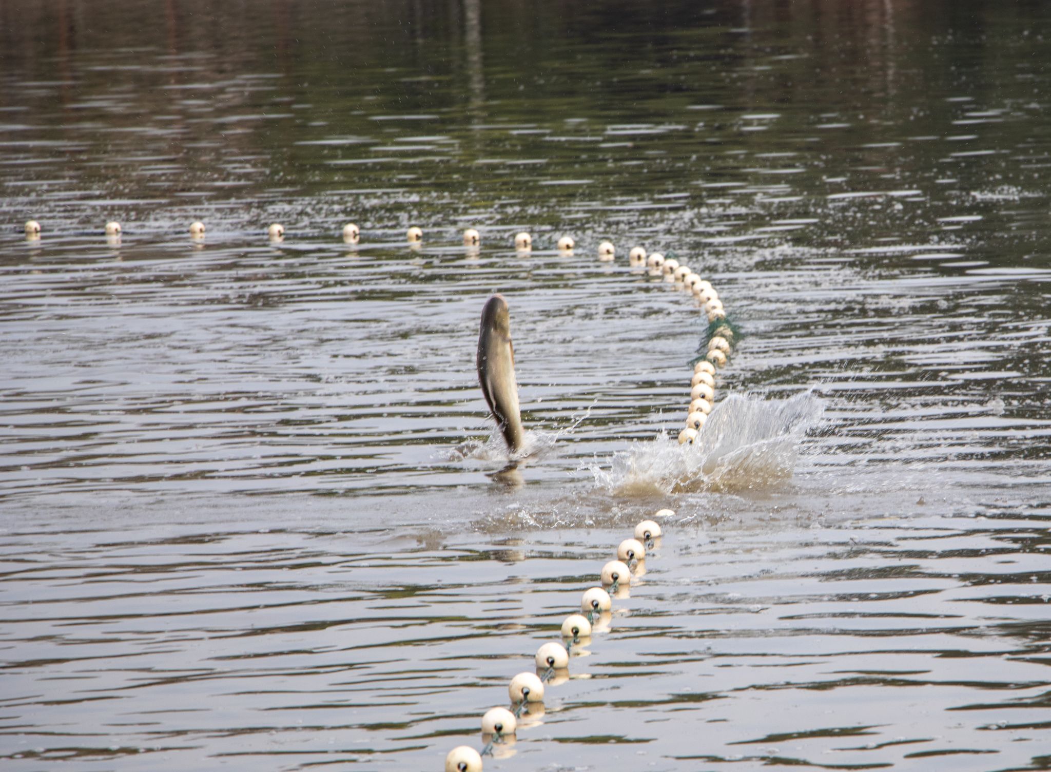 鱼跃与后勤老人 姜永鸿摄