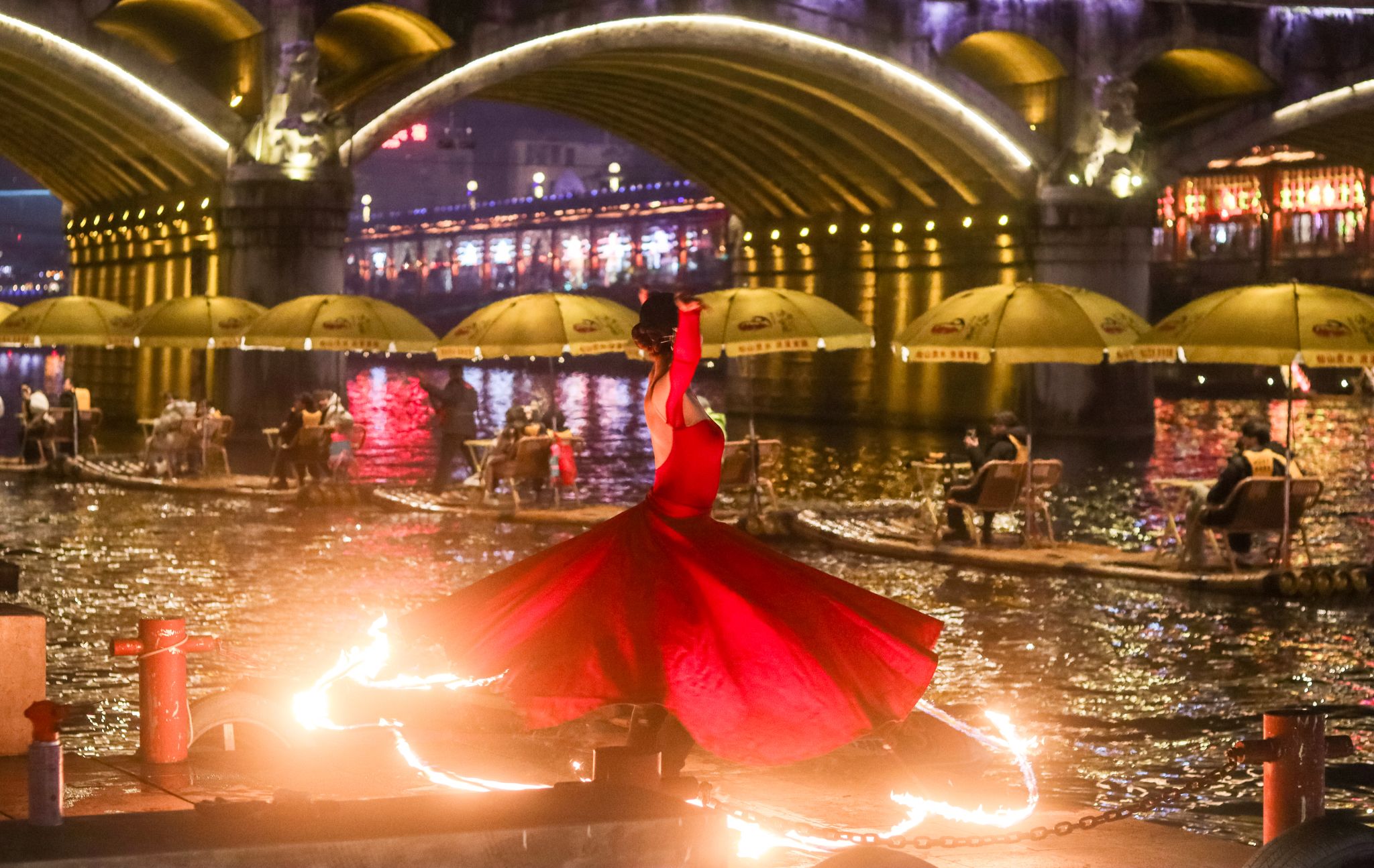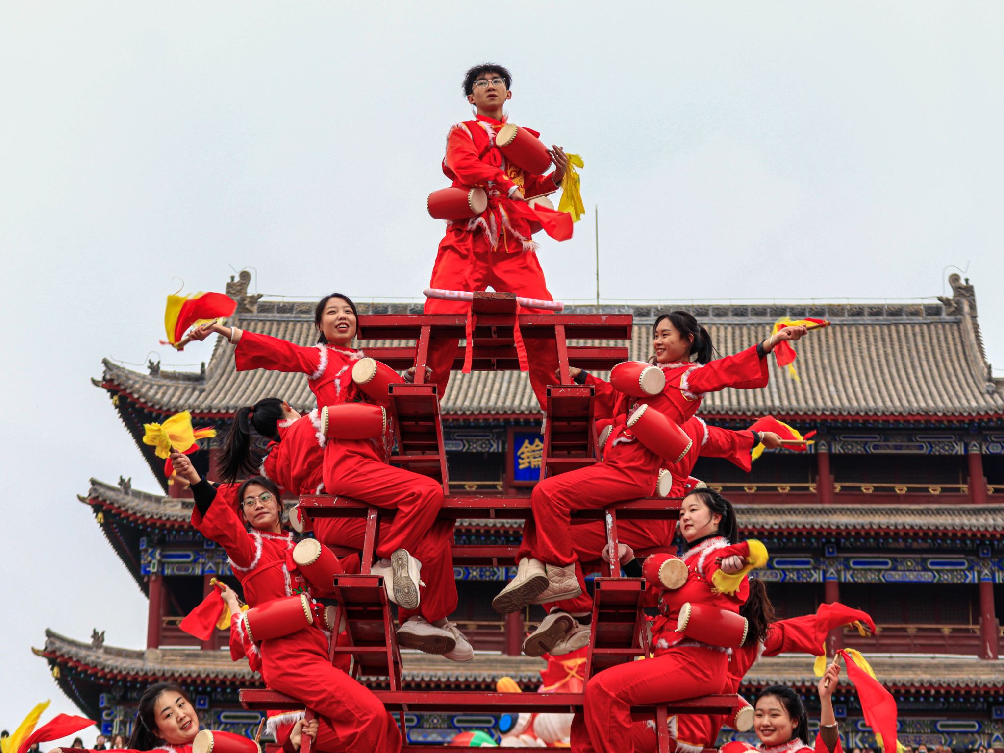 忻州古城北广场高台花鼓表演 王铭浩摄