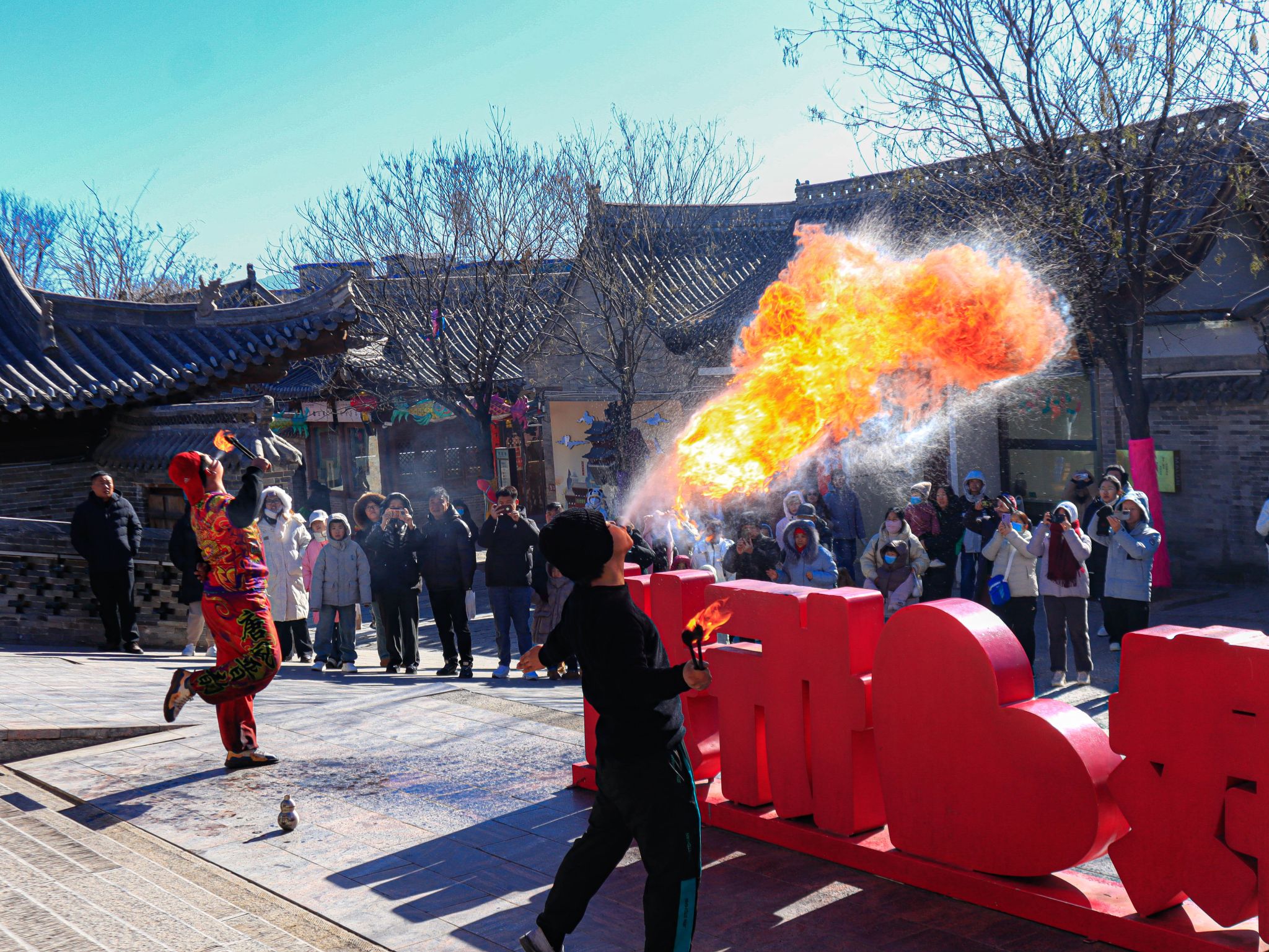 忻州古城秀容书院喷火表演 王铭浩摄