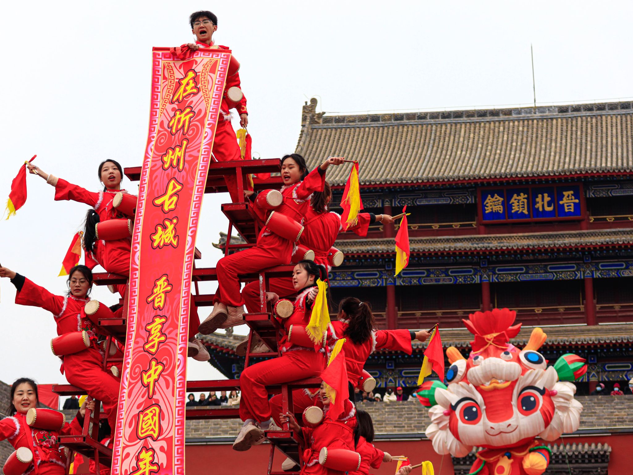 忻州古城北广场高台花鼓地面表演 王铭浩摄