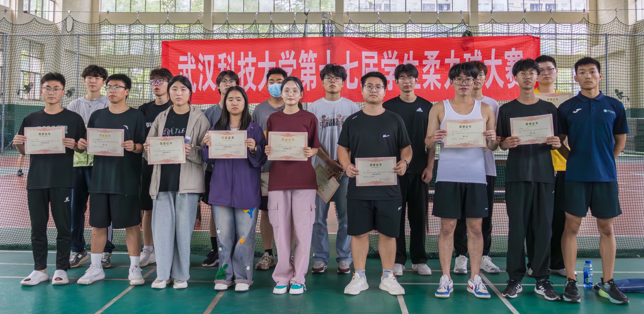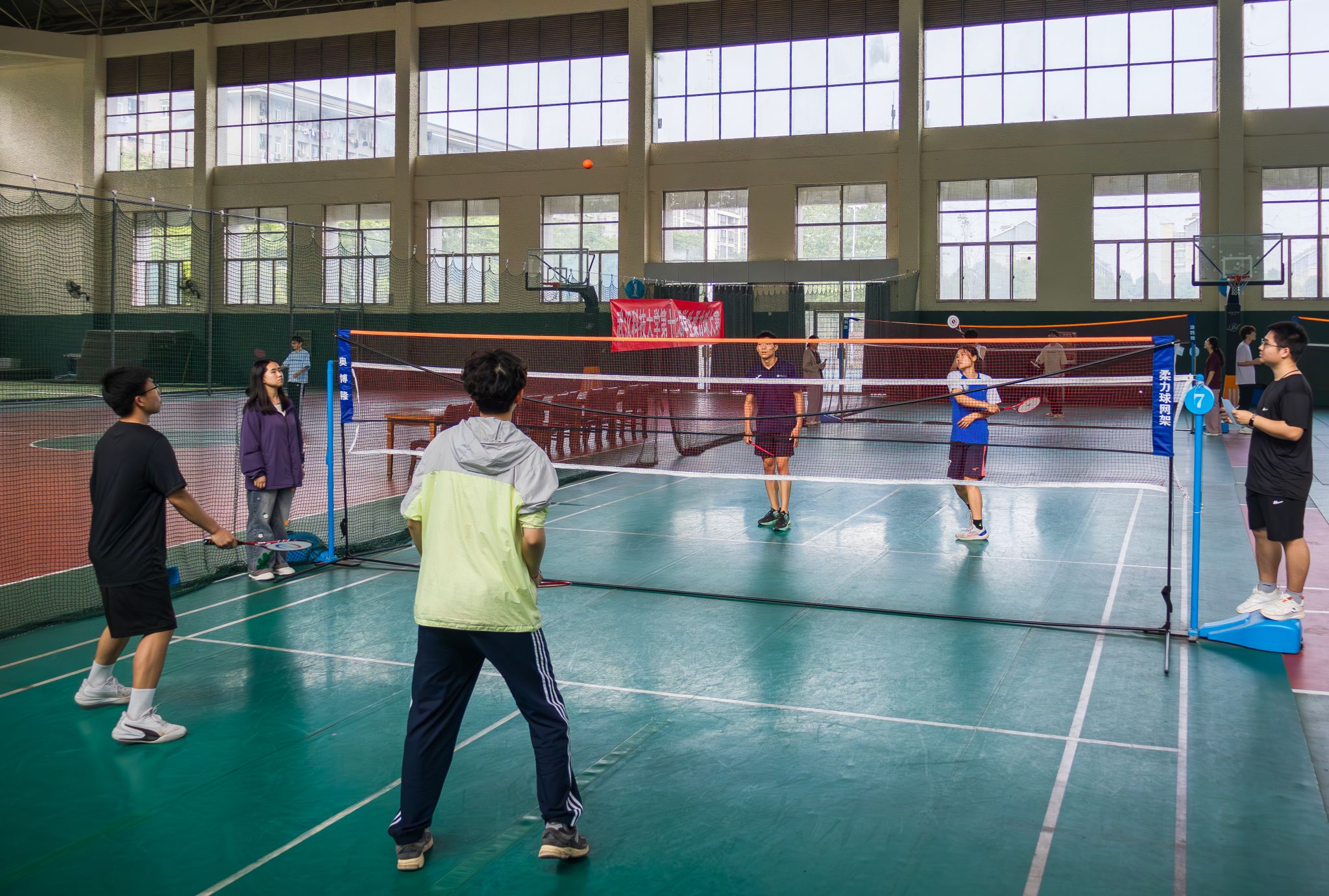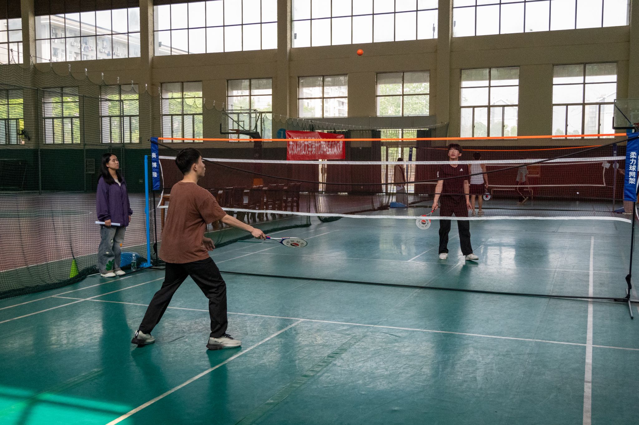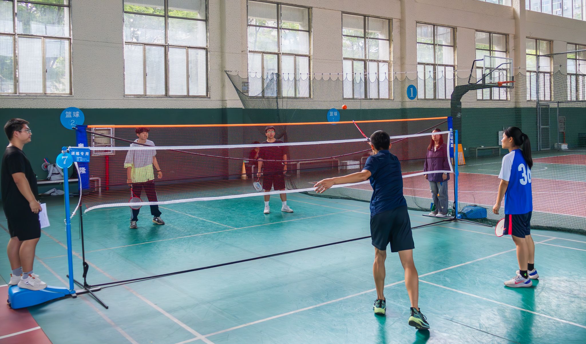 4月19日至4月20日,js33333线路登录第十七届柔力球大赛于黄家湖校区北苑体育活动中心羽毛球场举行。花式比赛,裁判员带来赛前热身表演,表演结束后,裁判员与7支参赛队伍集合表演《阳光年华》。网式比赛参赛选手30余人通过三局二胜制进行三轮比赛,最后由裁判汇总分数评选名次并颁发奖状。