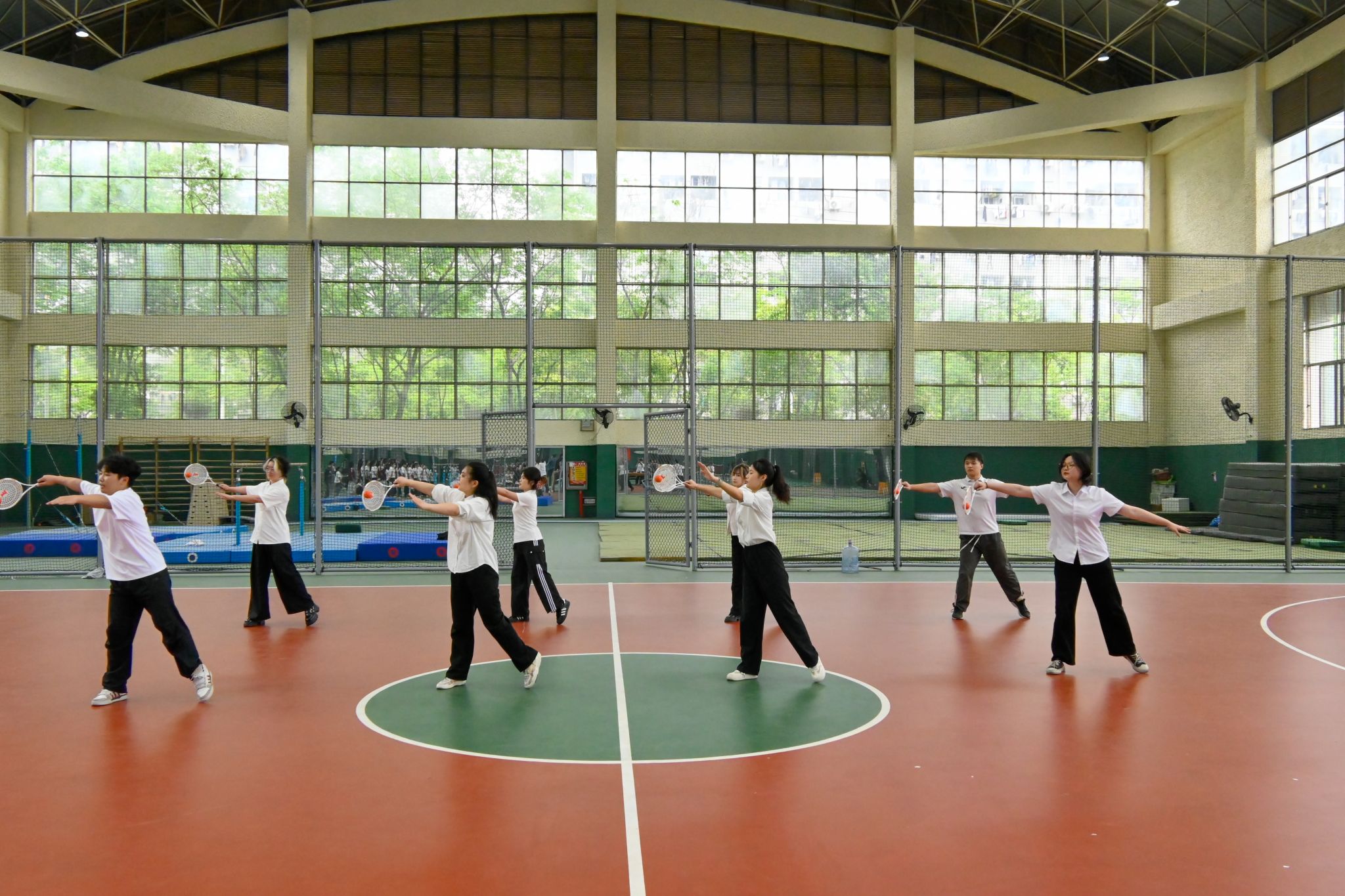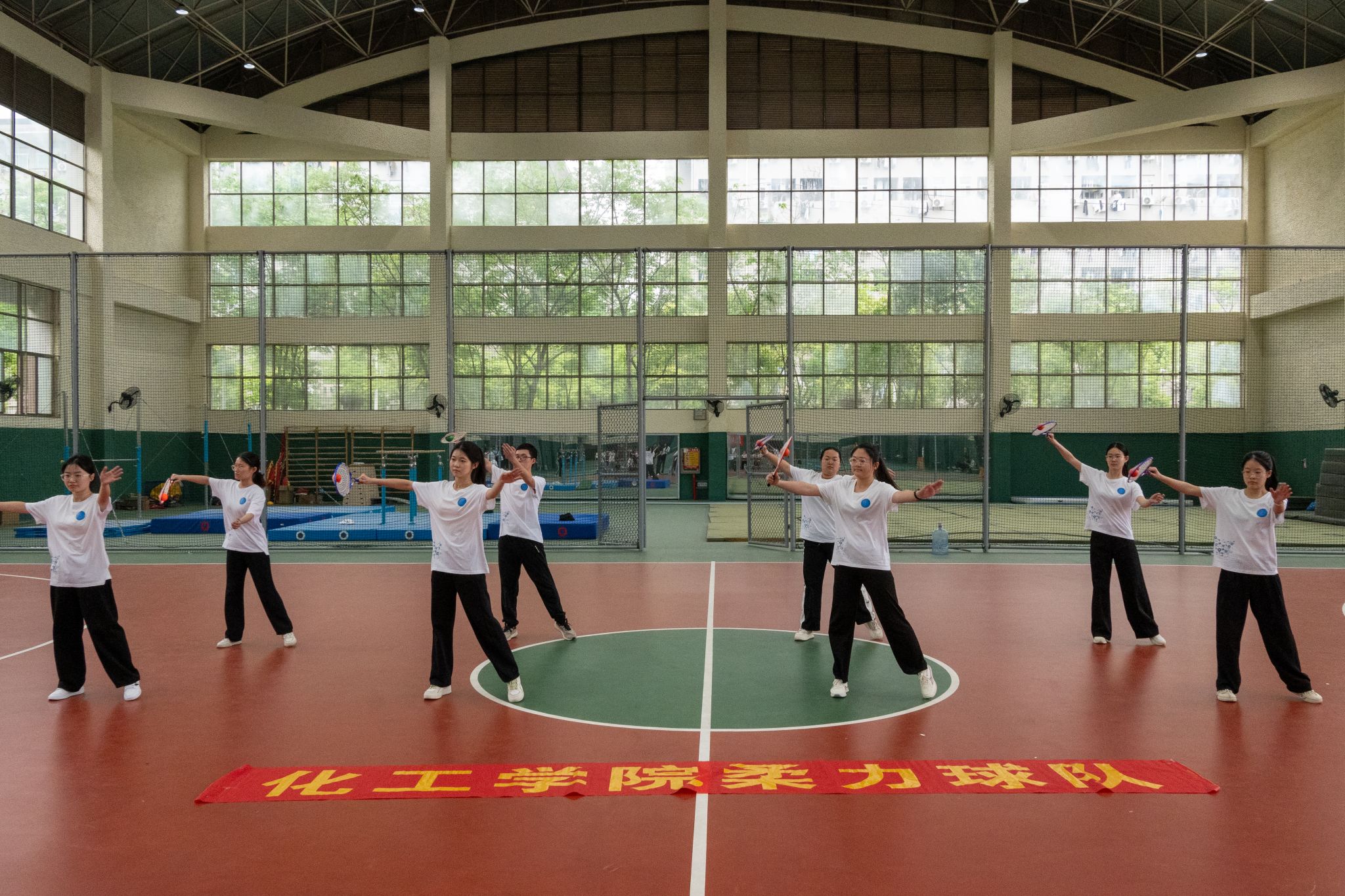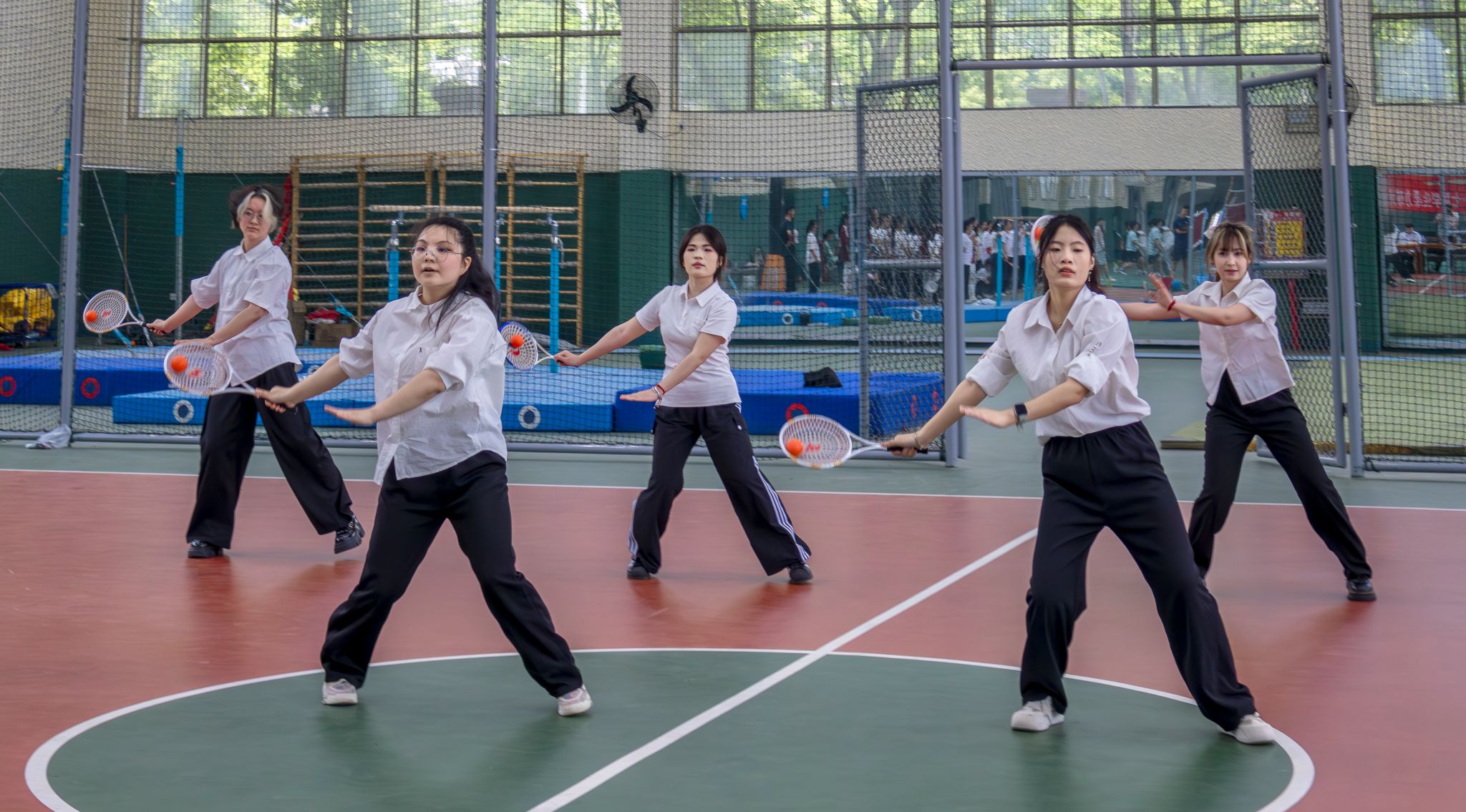 集体表演运球侧面 胡泰山摄